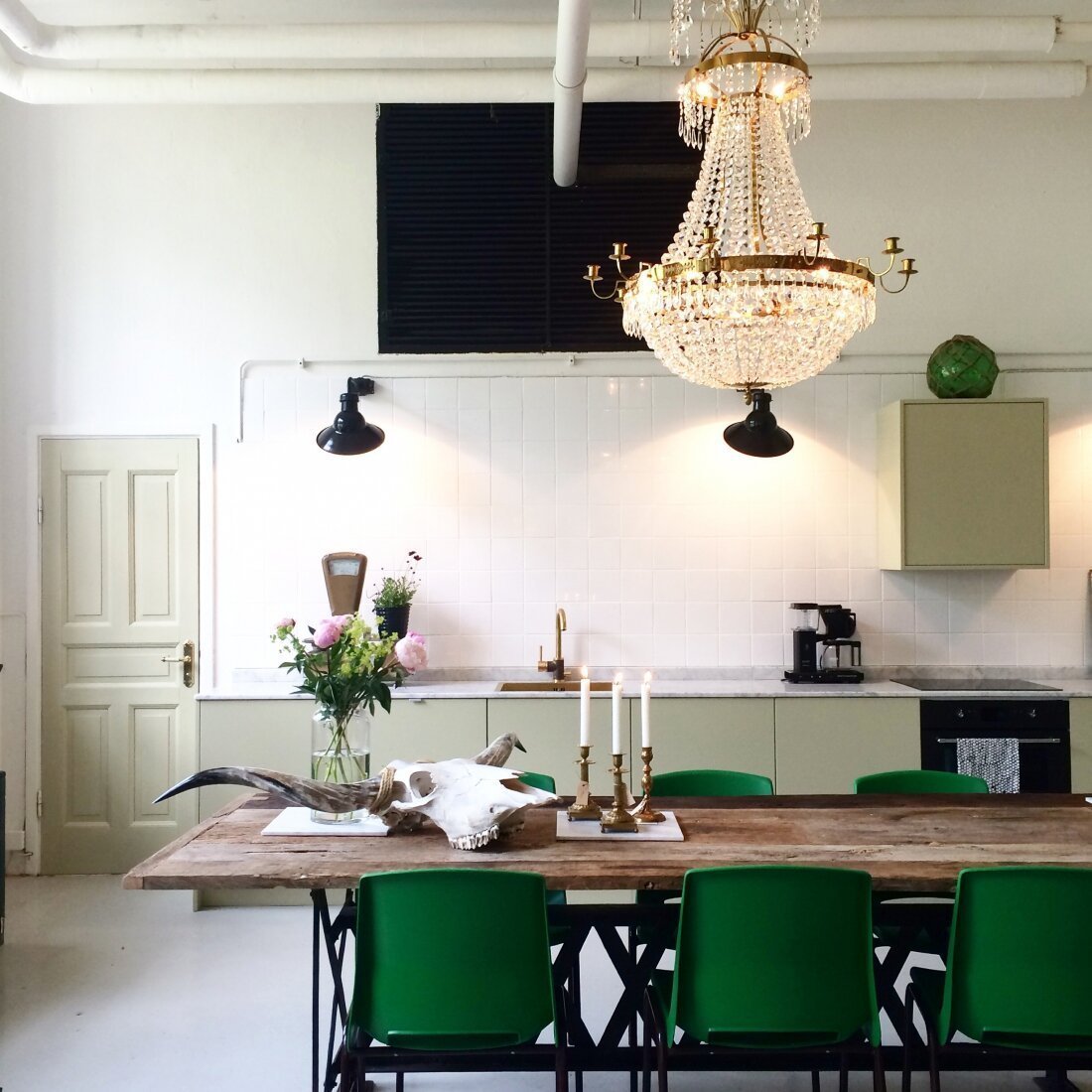 Зелёные стулья в интерьере кухни