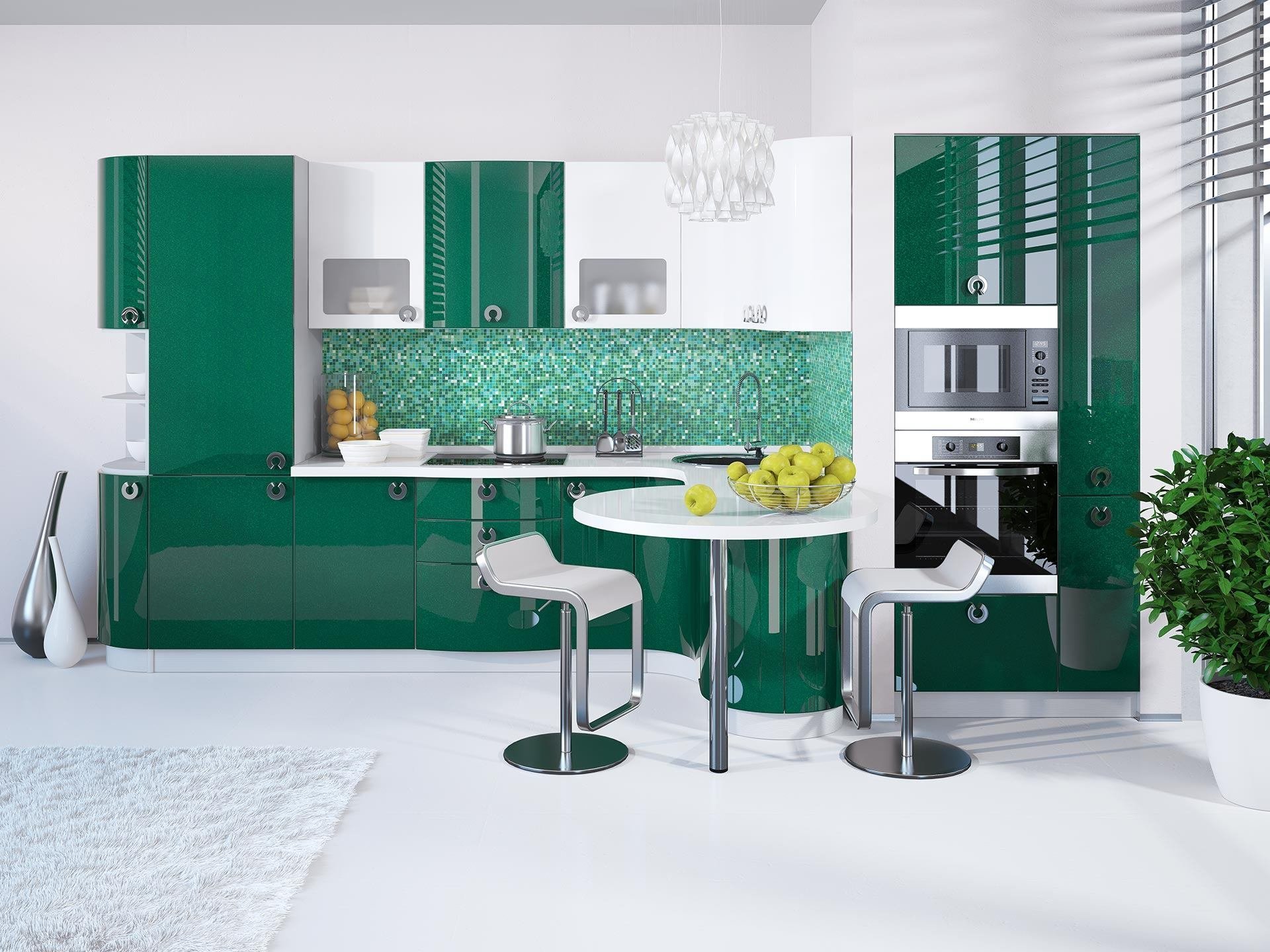 Кухня изумрудного цвета