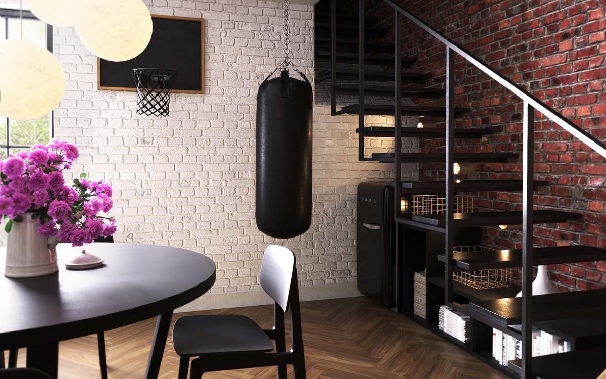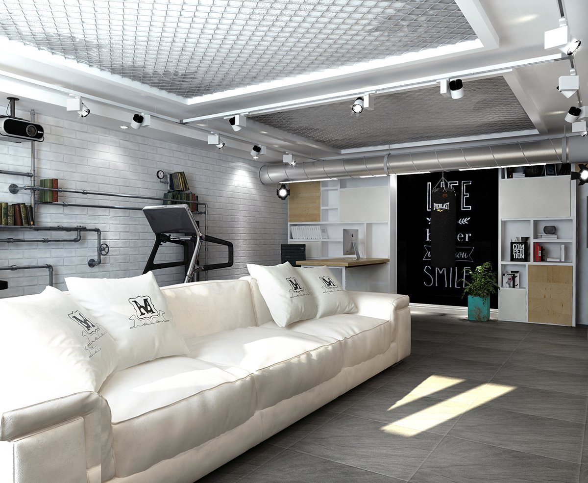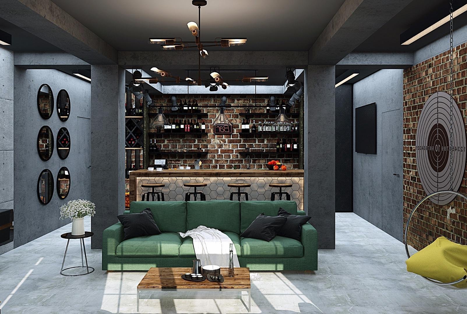 Интерьер цоколя в стиле лофт