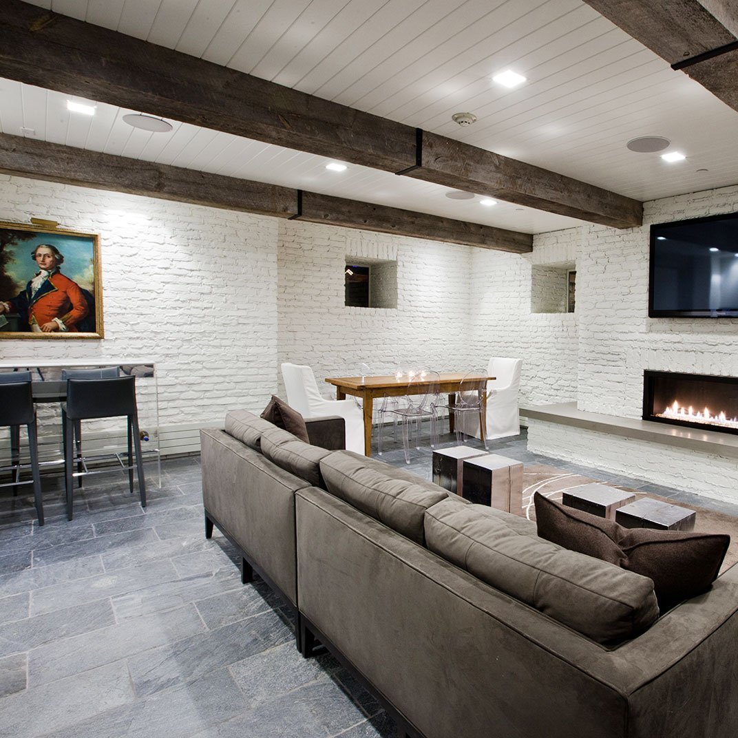 Интерьер цокольного этажа в частном доме