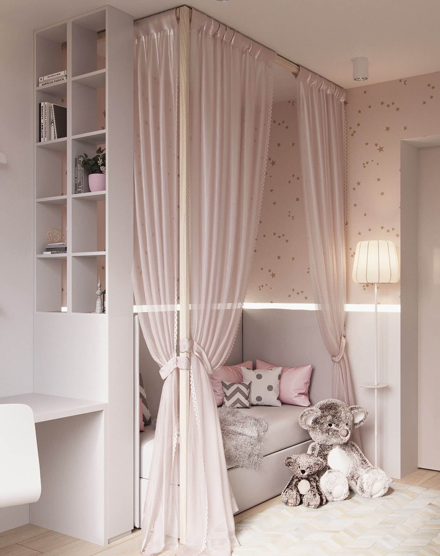 Зонирование детской комнаты для девочки