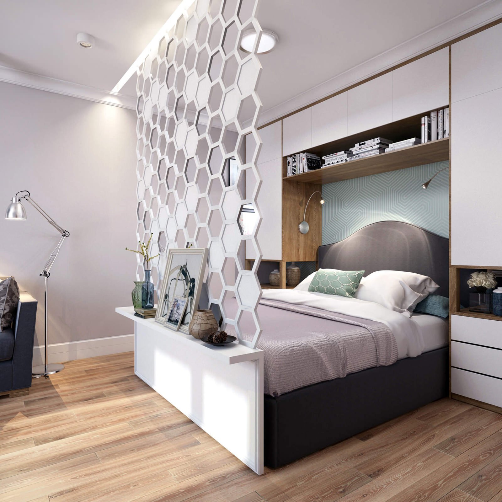 Спальня с перегородкой декоративной