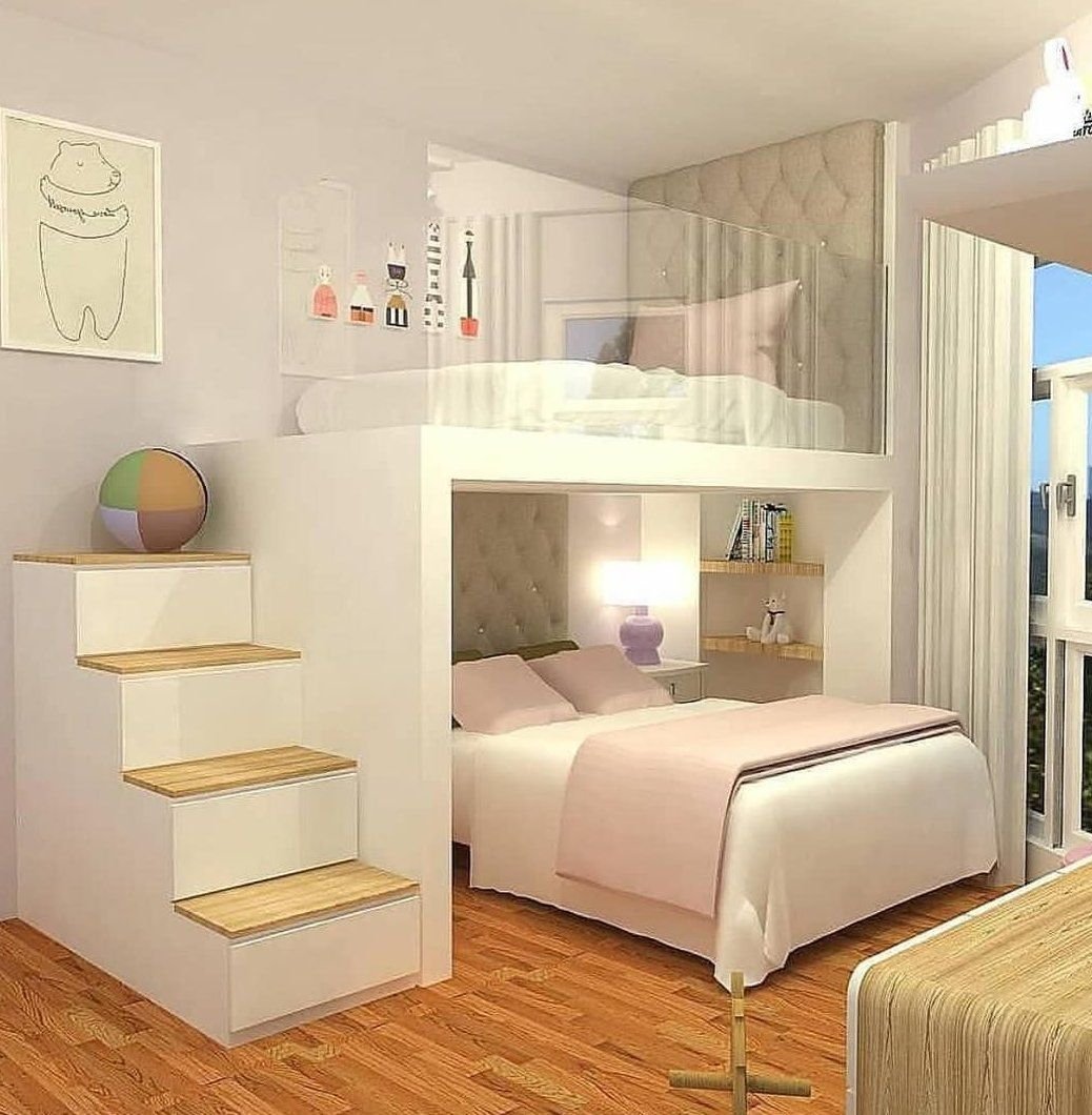 Интерьер с кроватью на втором ярусе
