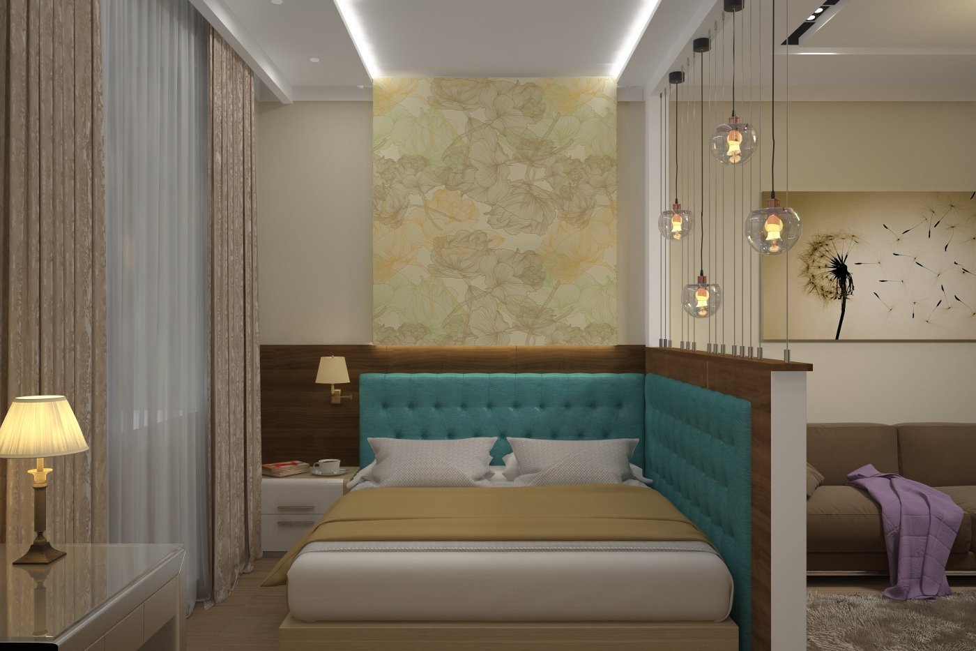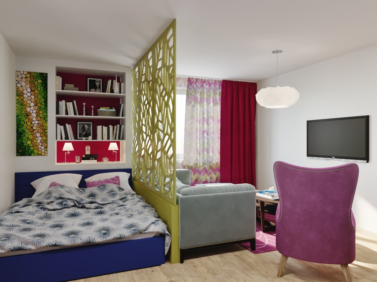 Разделение спальни и гостиной в одной комнате
