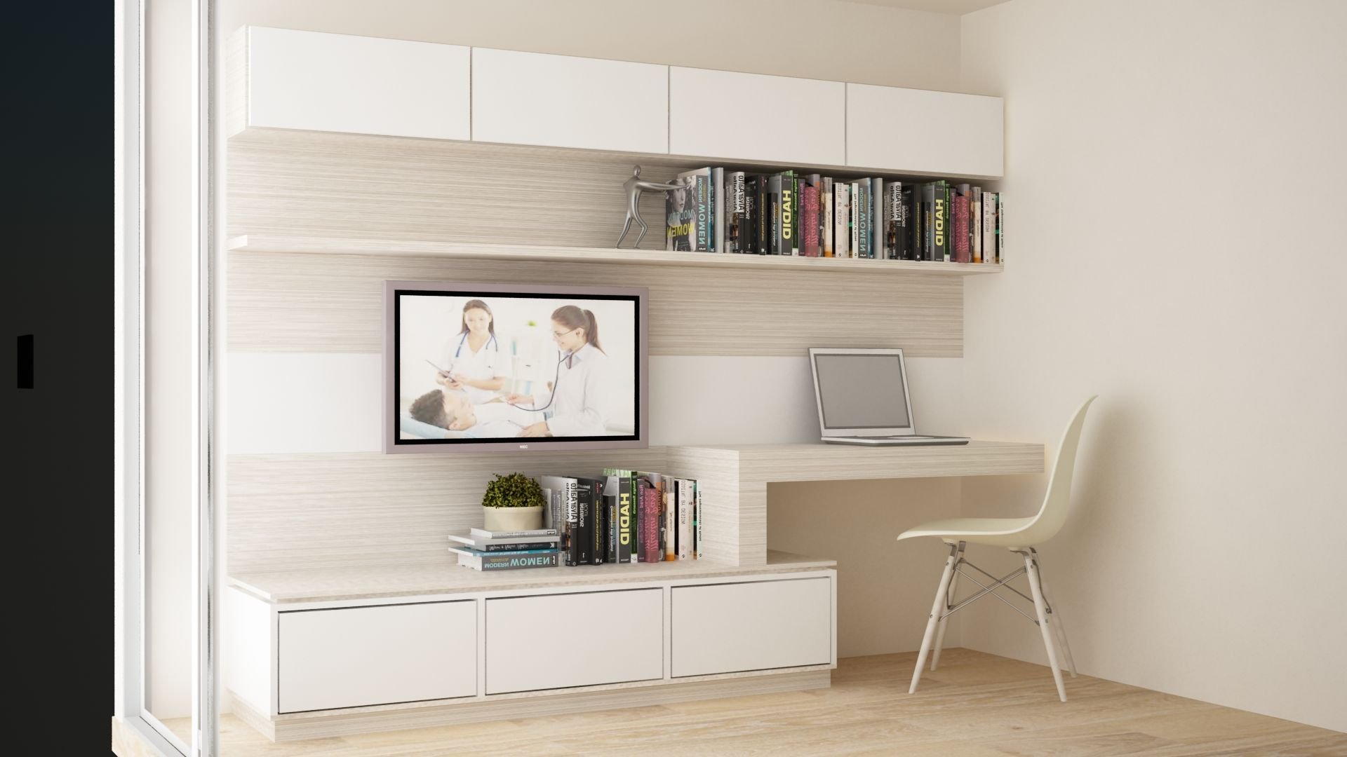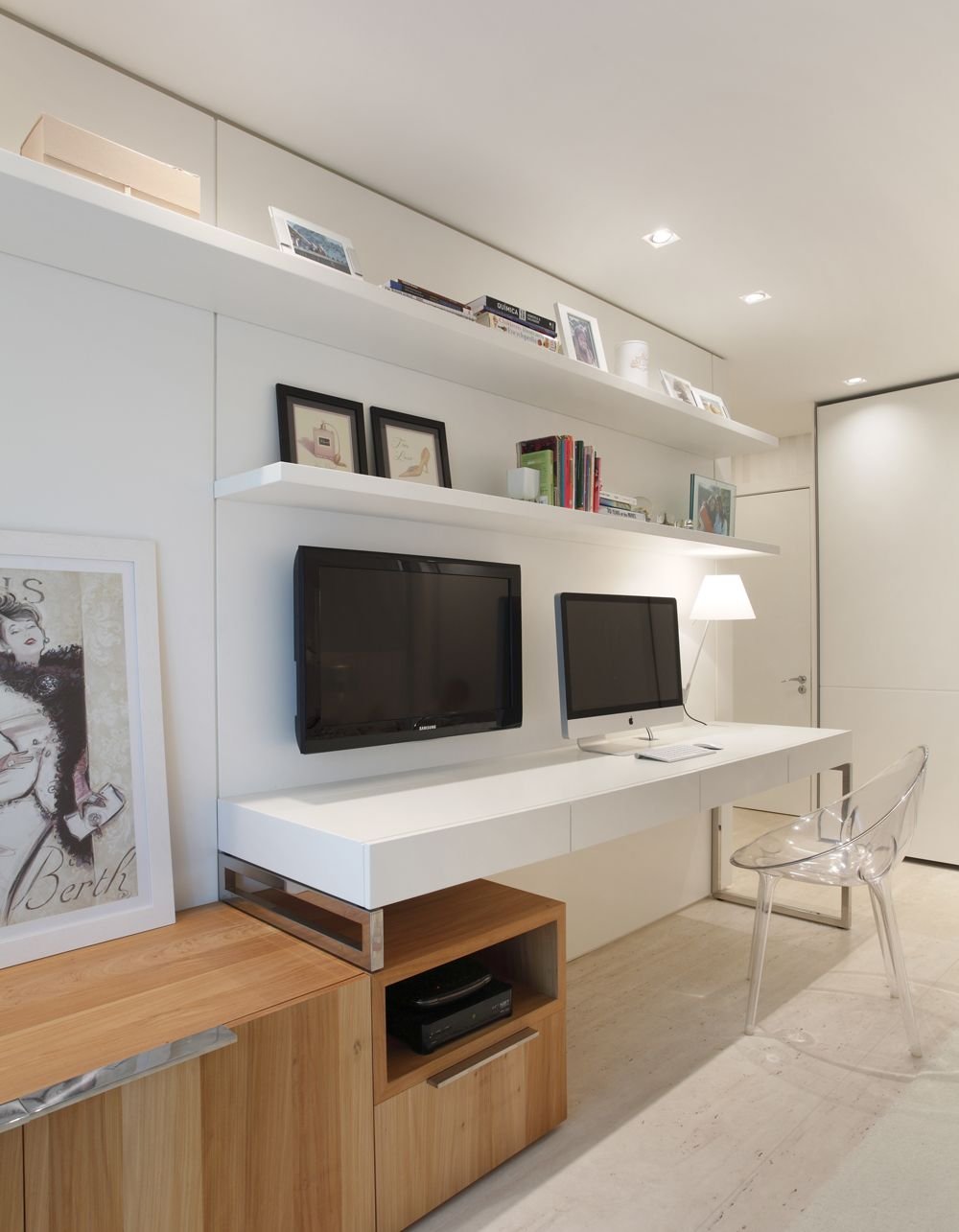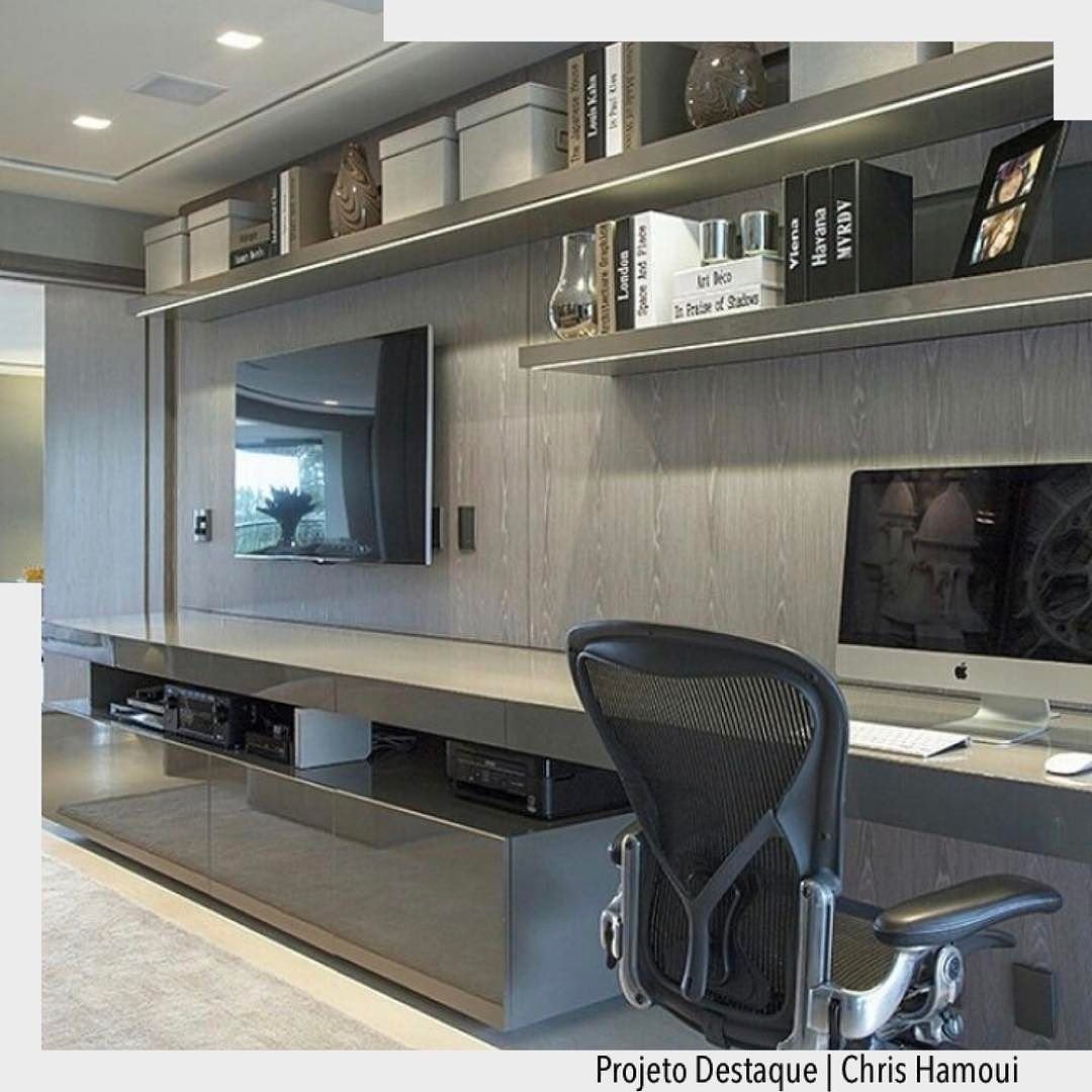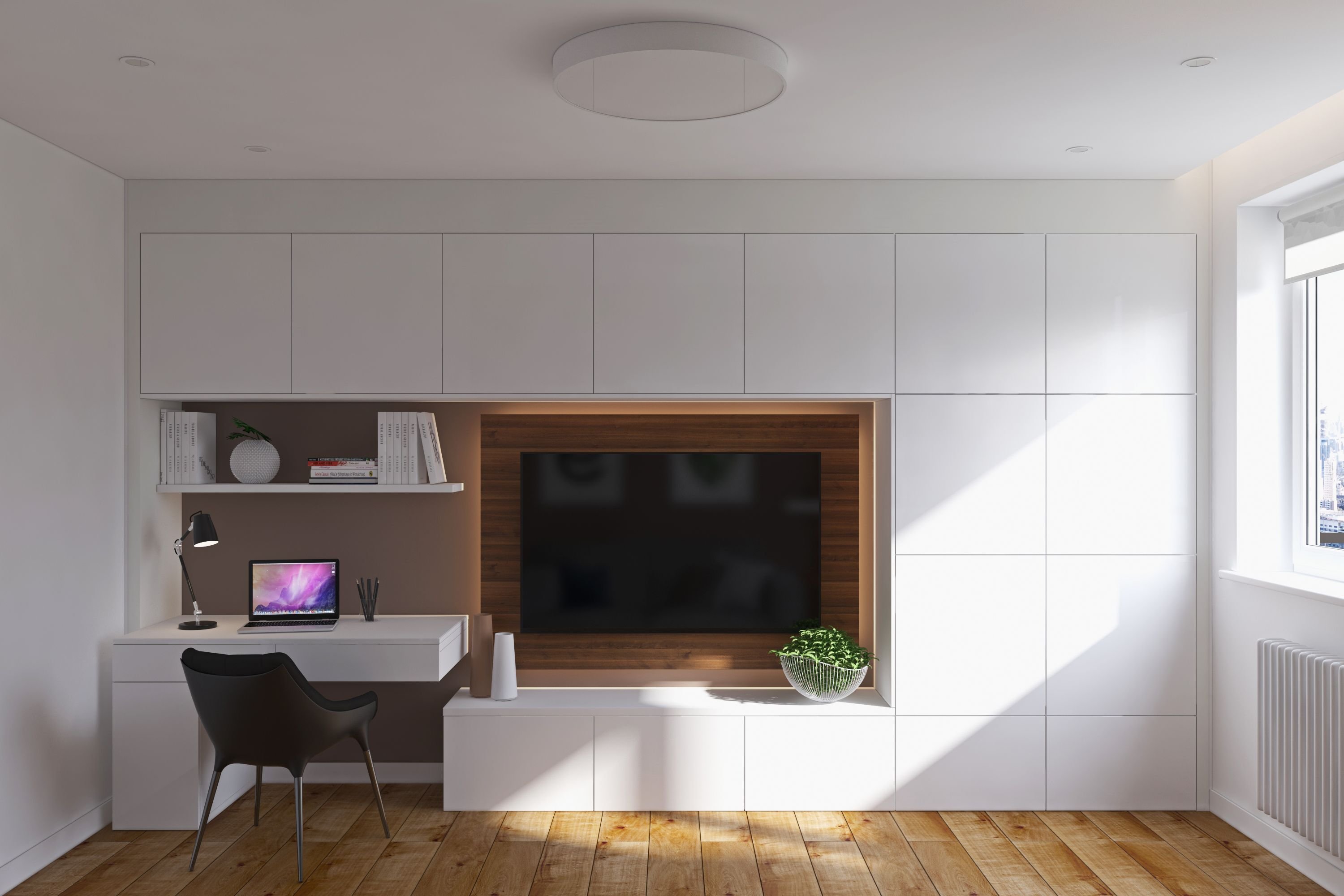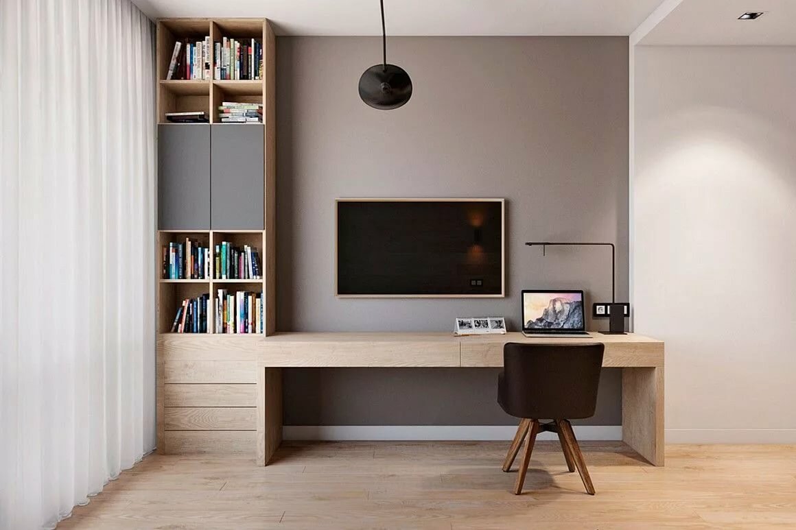ТВ зона с рабочим местом в гостиной Минимализм