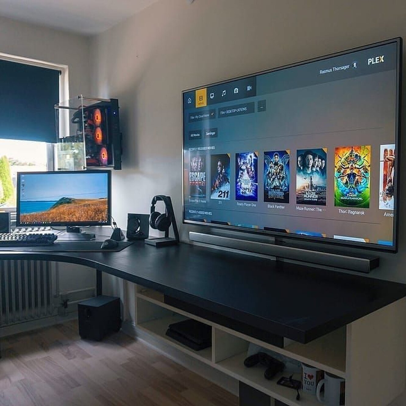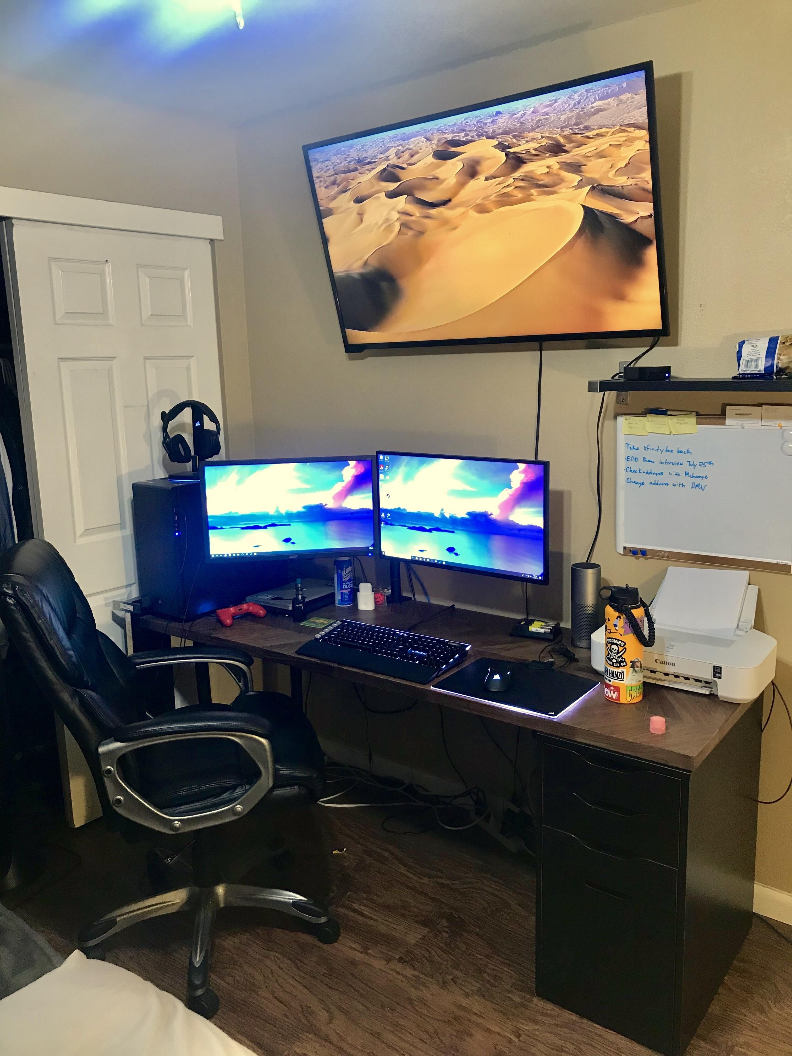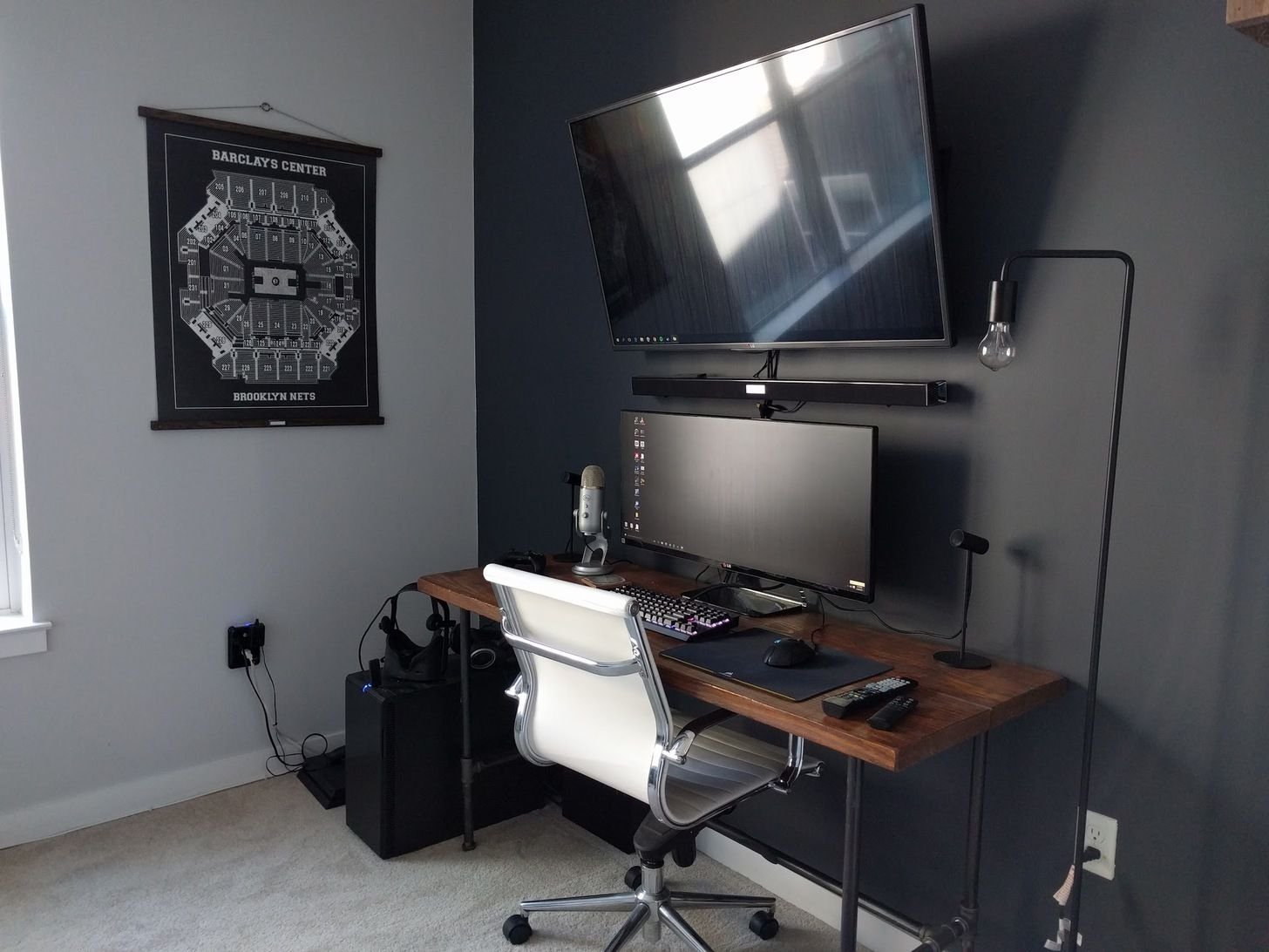 Рабочее место с компьютером и телевизором