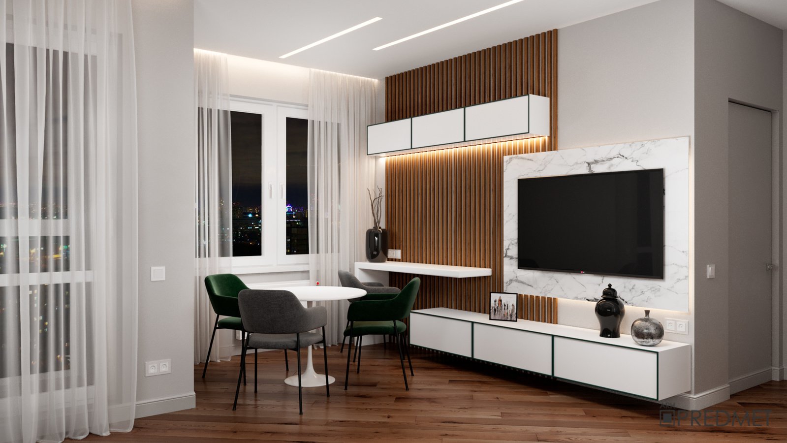 Кухня гостиная с ТВ зоной