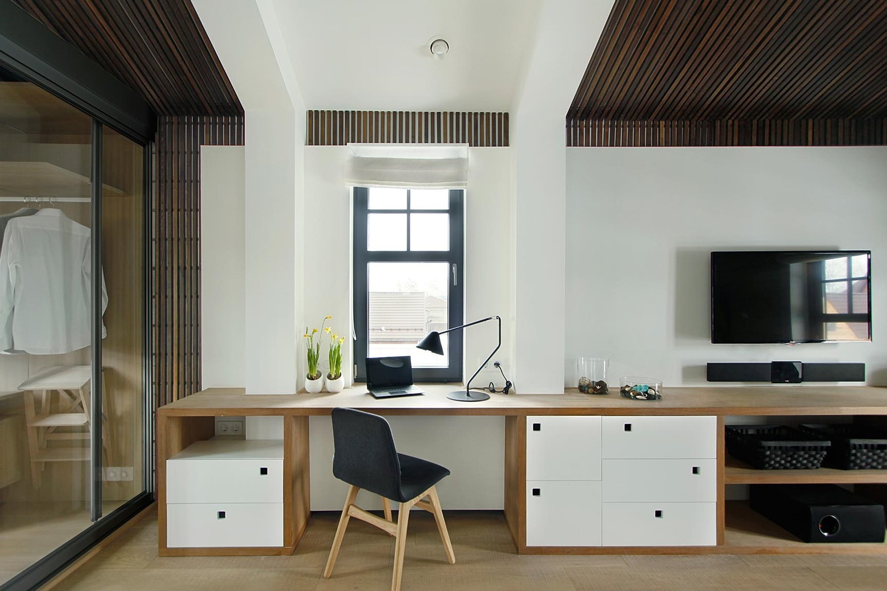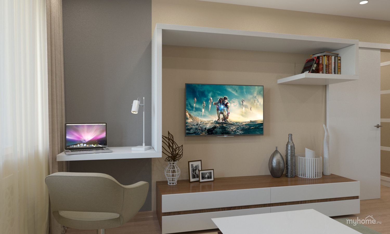 ТВ зона с письменным столом