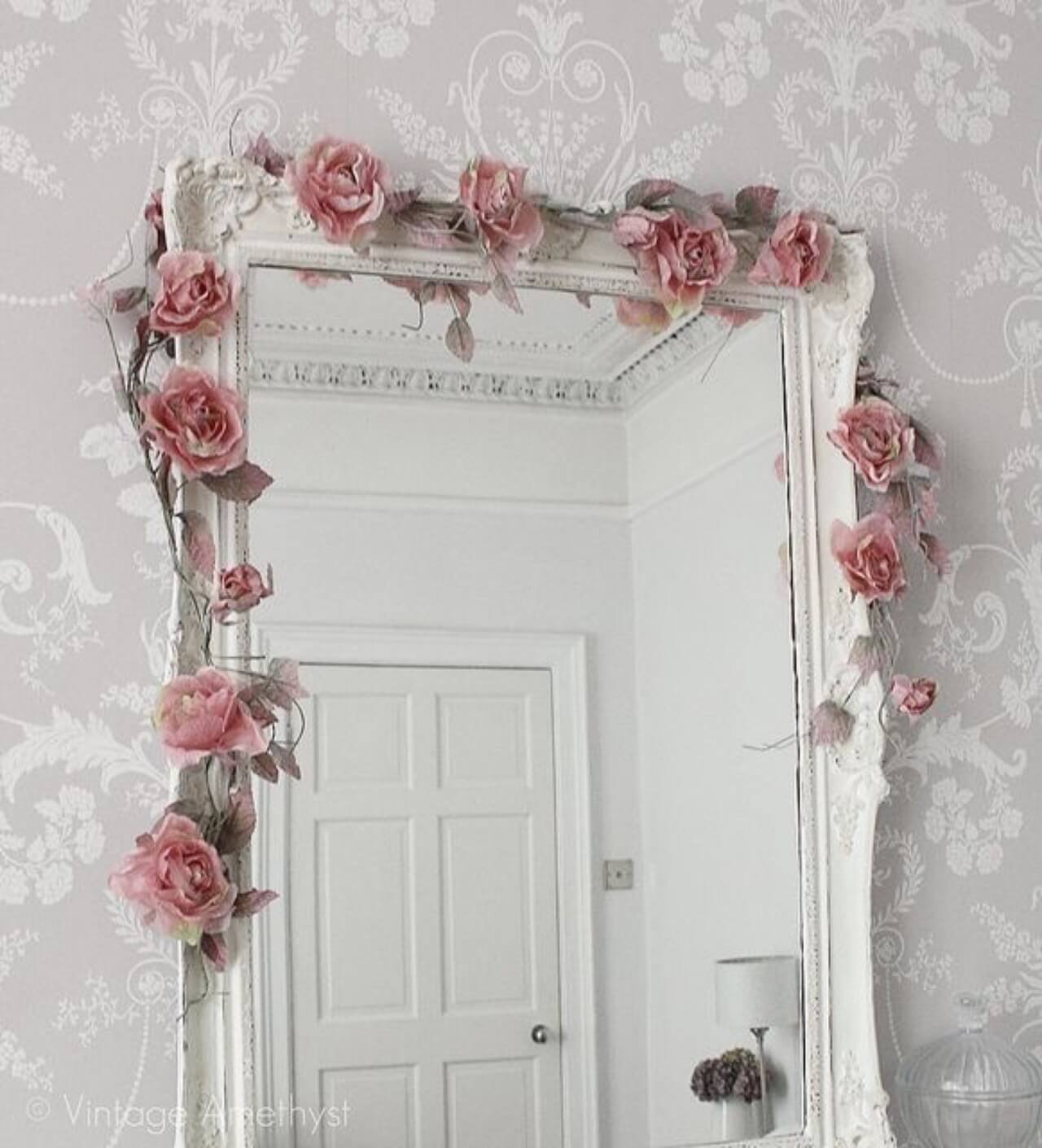Декор зеркала искусственными цветами