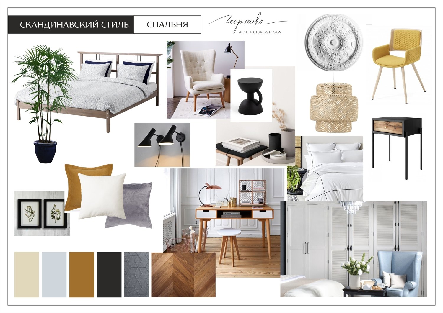 Мудборд спальни в скандинавском стиле