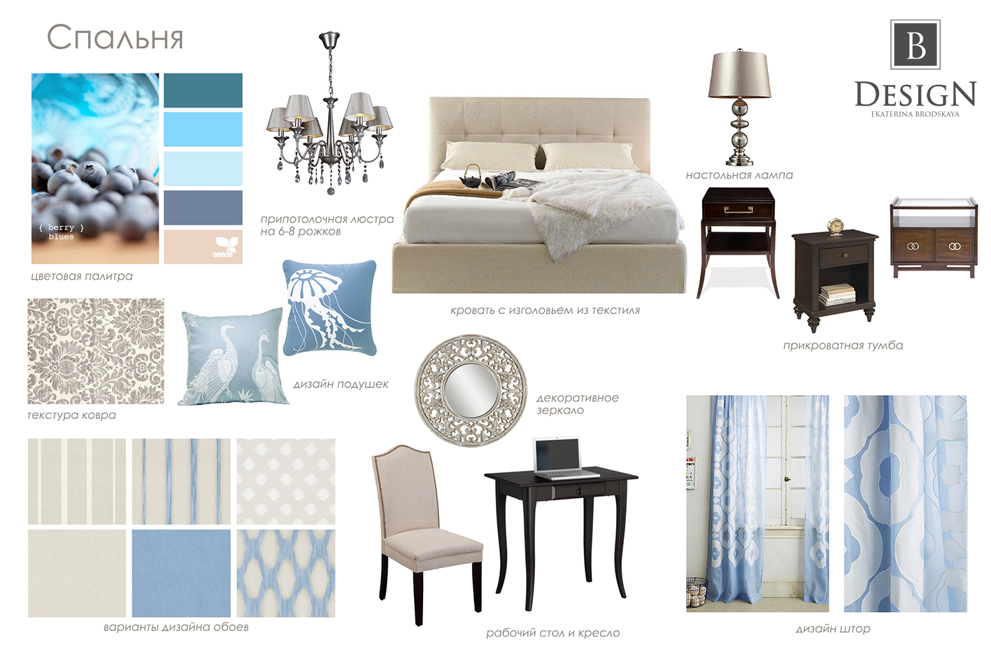 Мудборд для дизайнера интерьера для спальни