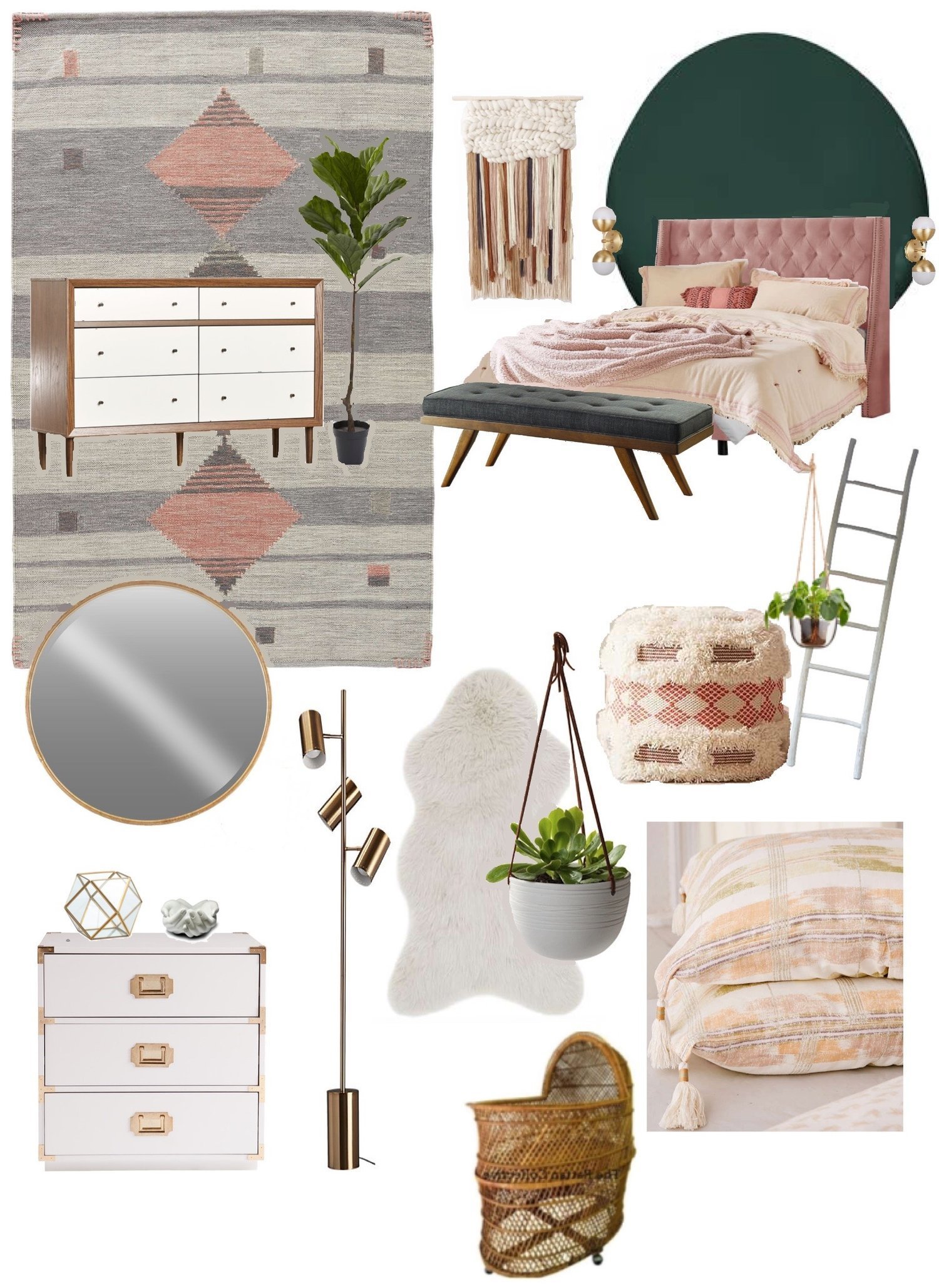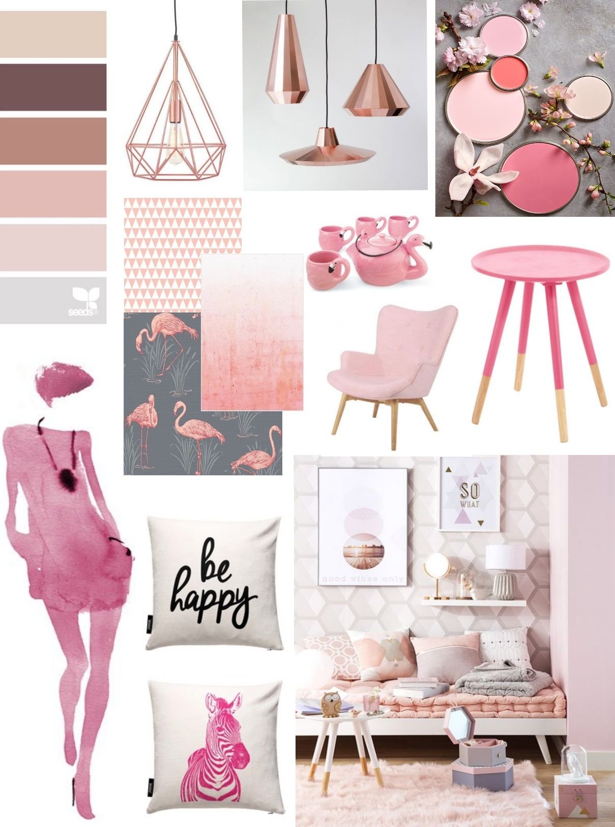 Мудборд спальня розовая