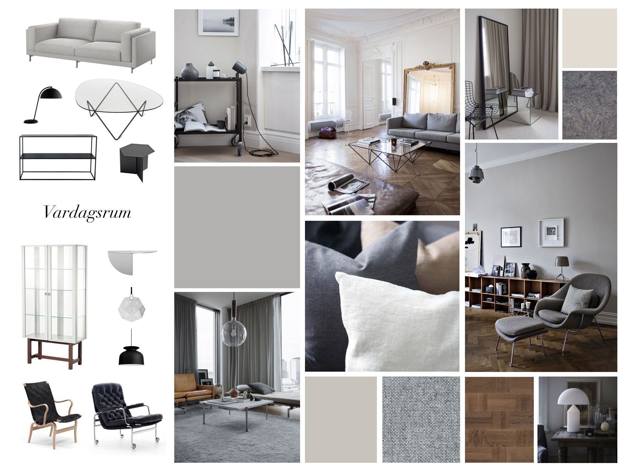 Мудборд интерьера в серых тонах