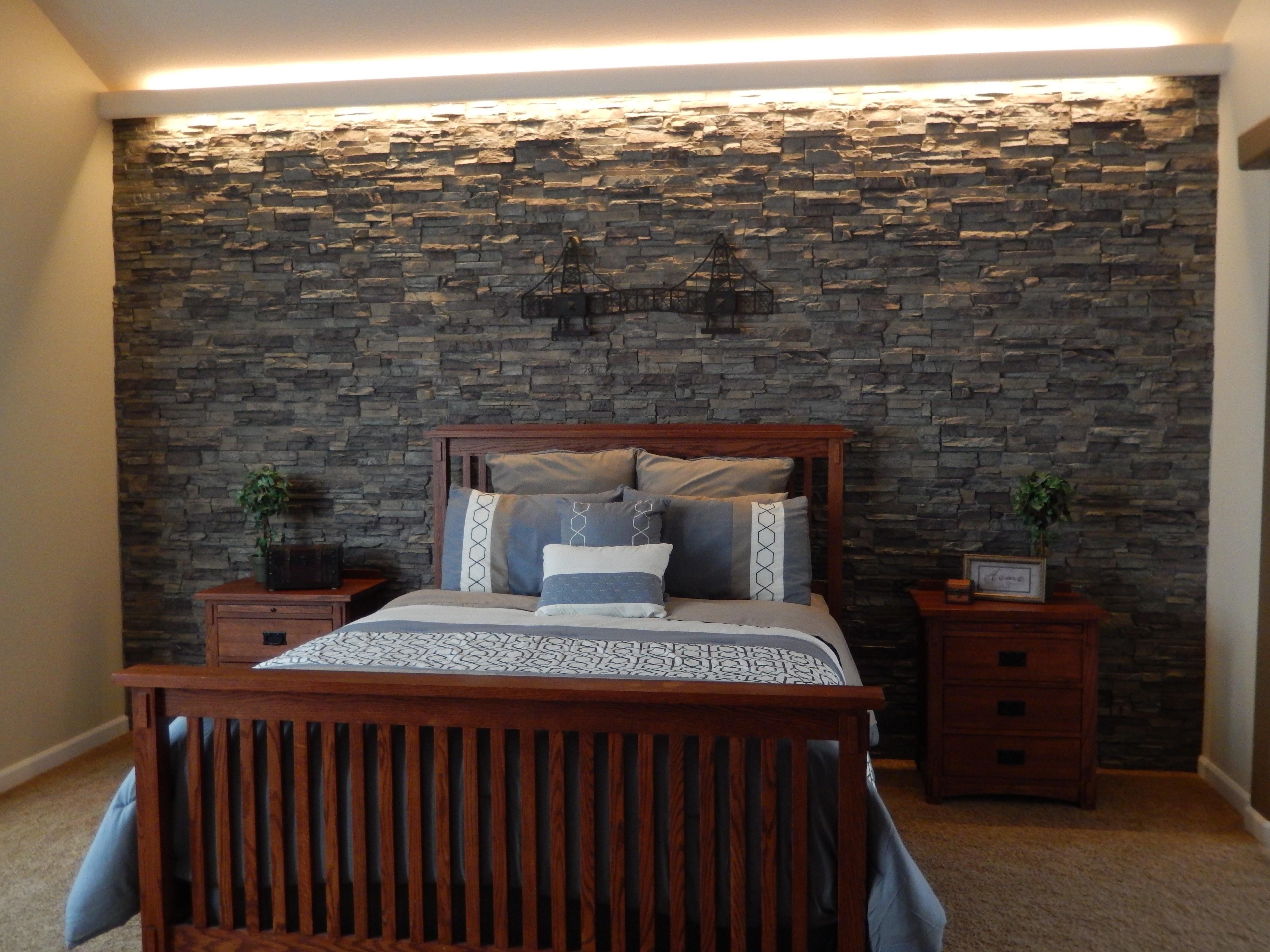 Отделка спальни декоративным камнем