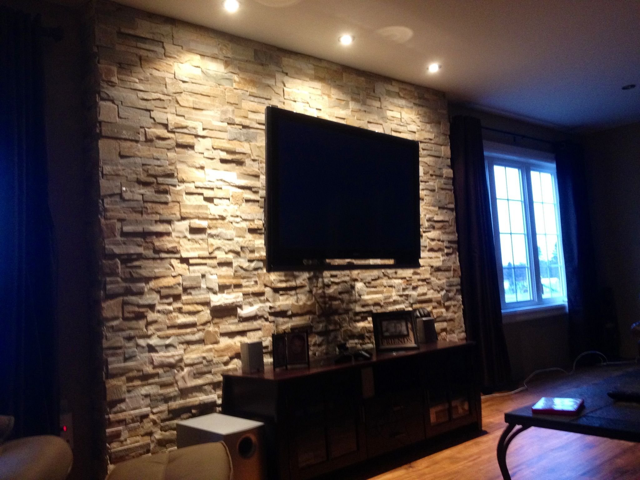 Декоративный камень за телевизором
