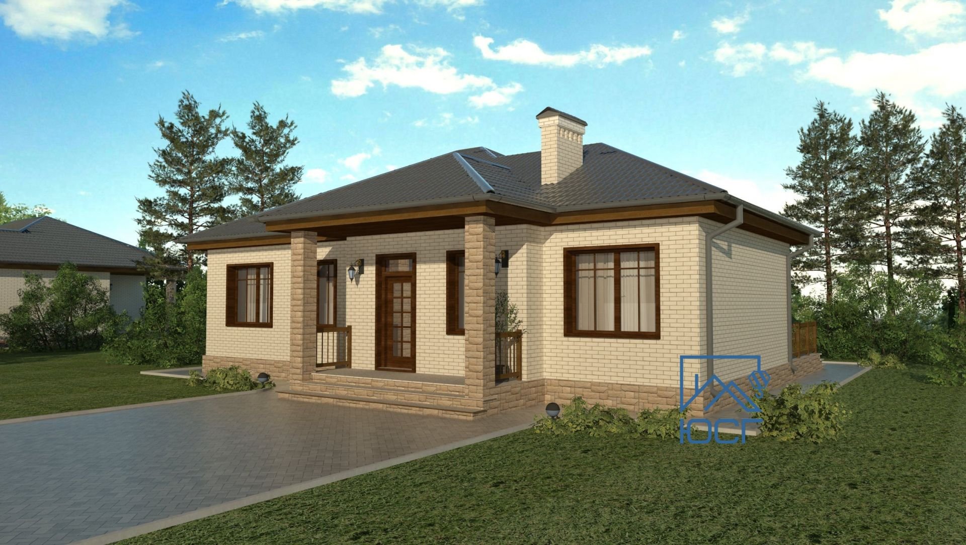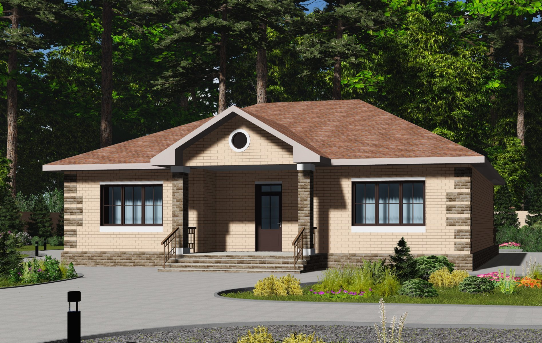 Одноэтажный дом с крыльцом