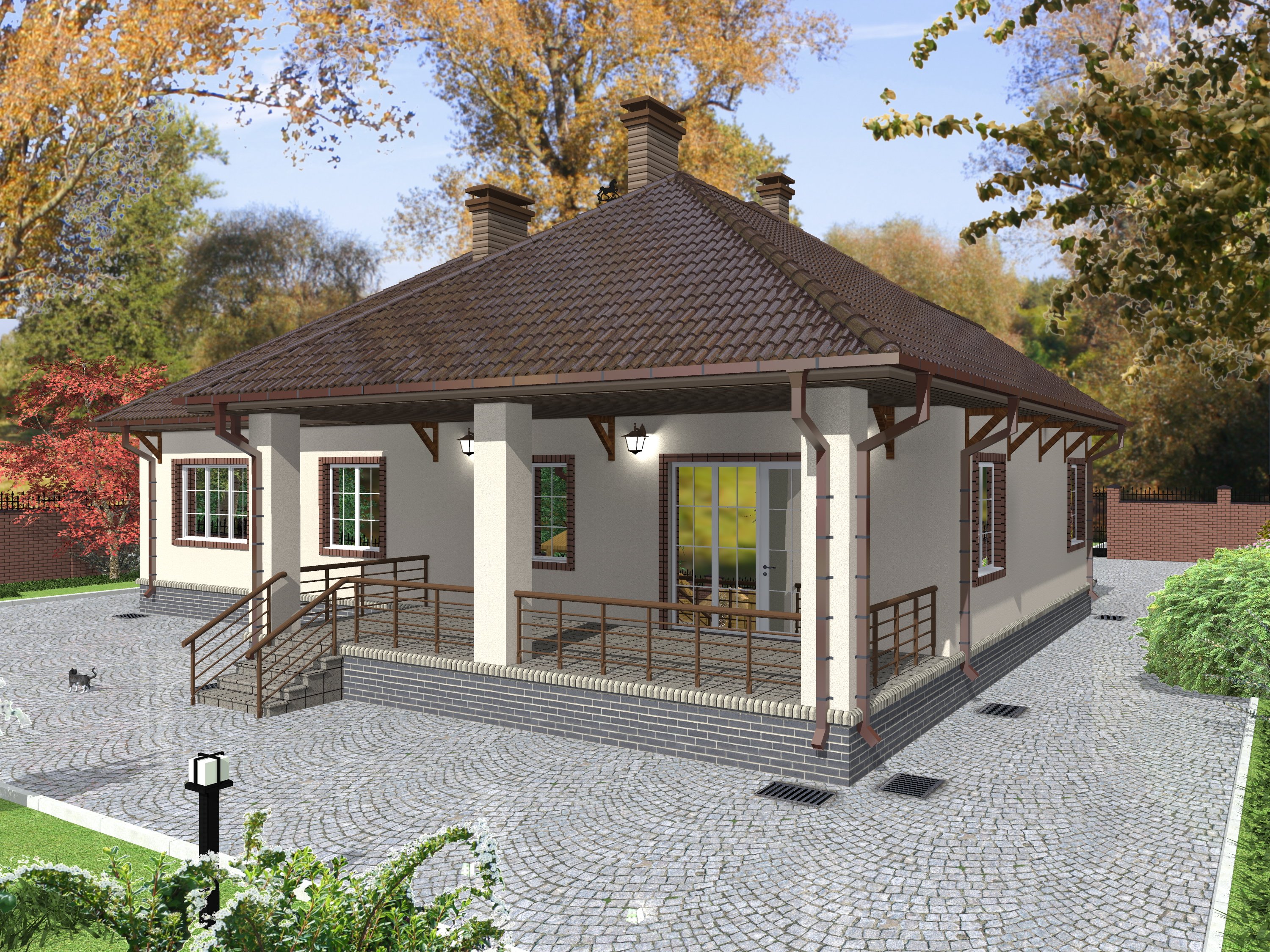 Одноэтажные дома с большим крыльцом