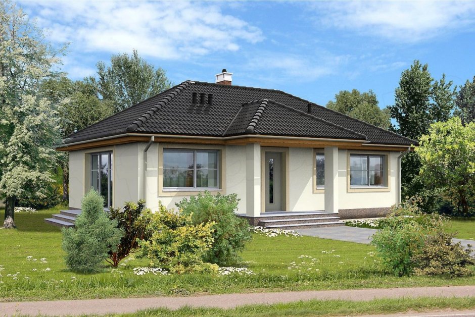 Одноэтажный дом с четырехскатной крышей