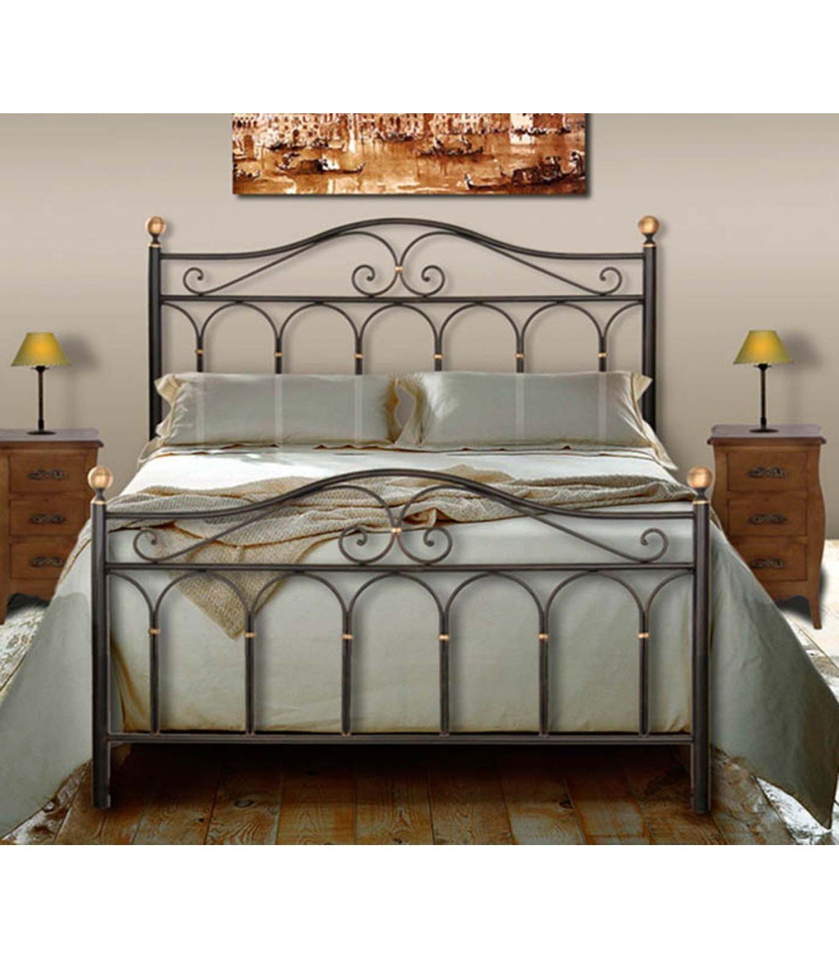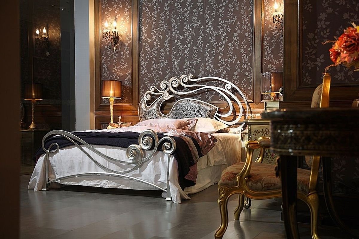 Кровати на ножках с кованным изголовьем
