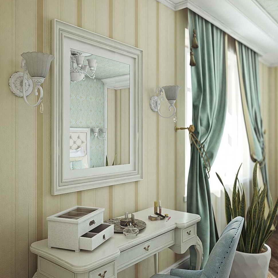 Бра на зеркале в интерьере спальни