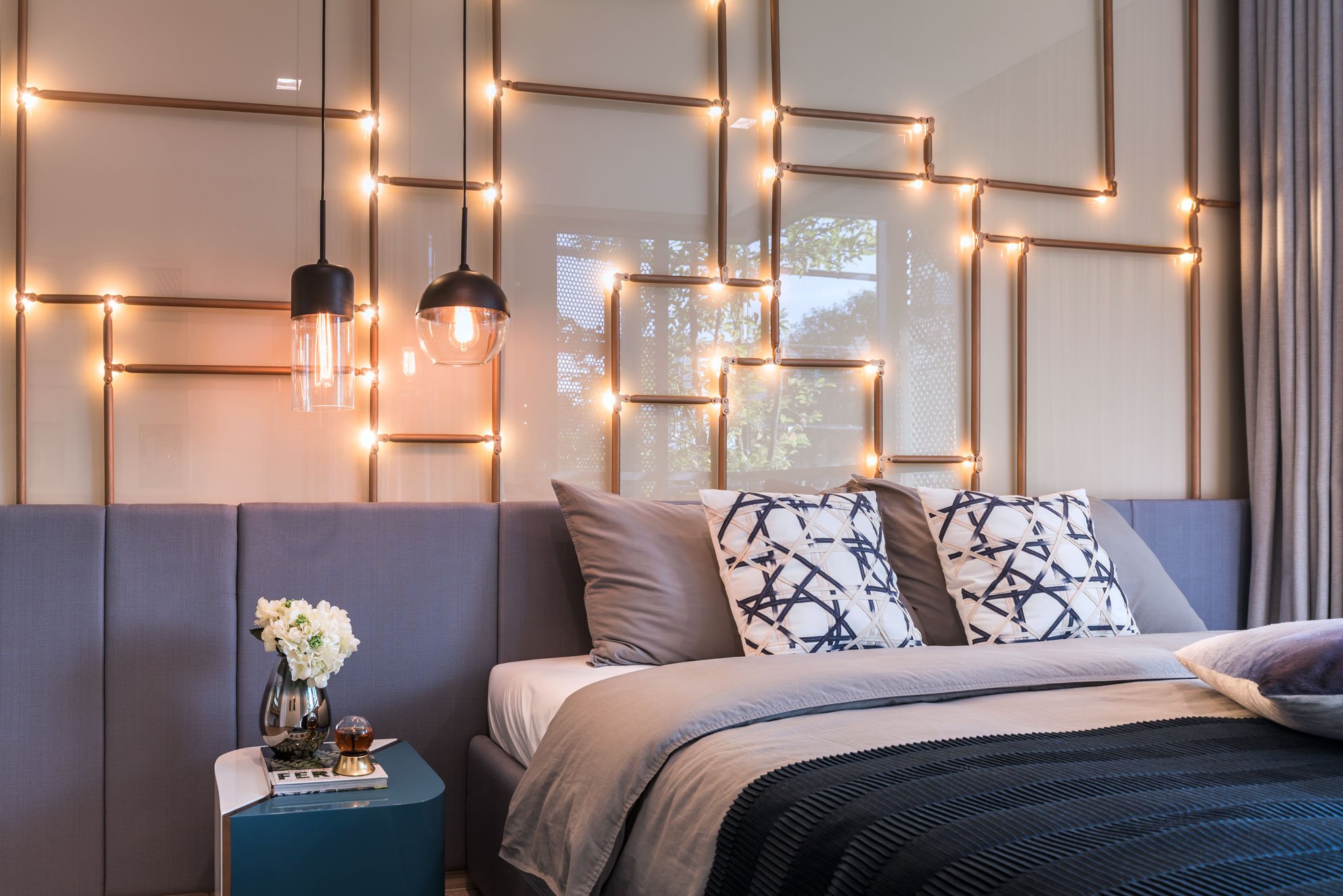Освещение у кровати в спальне