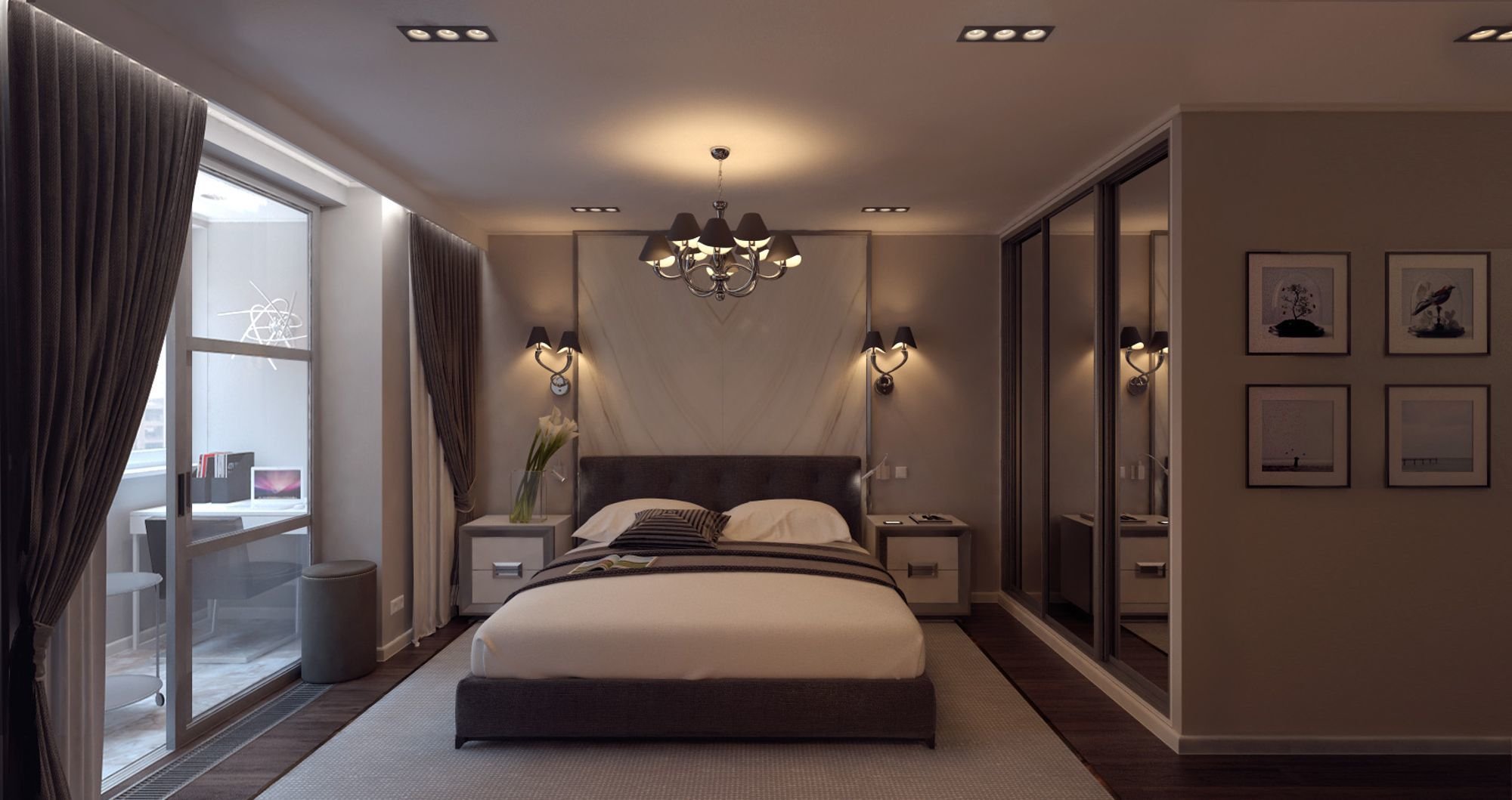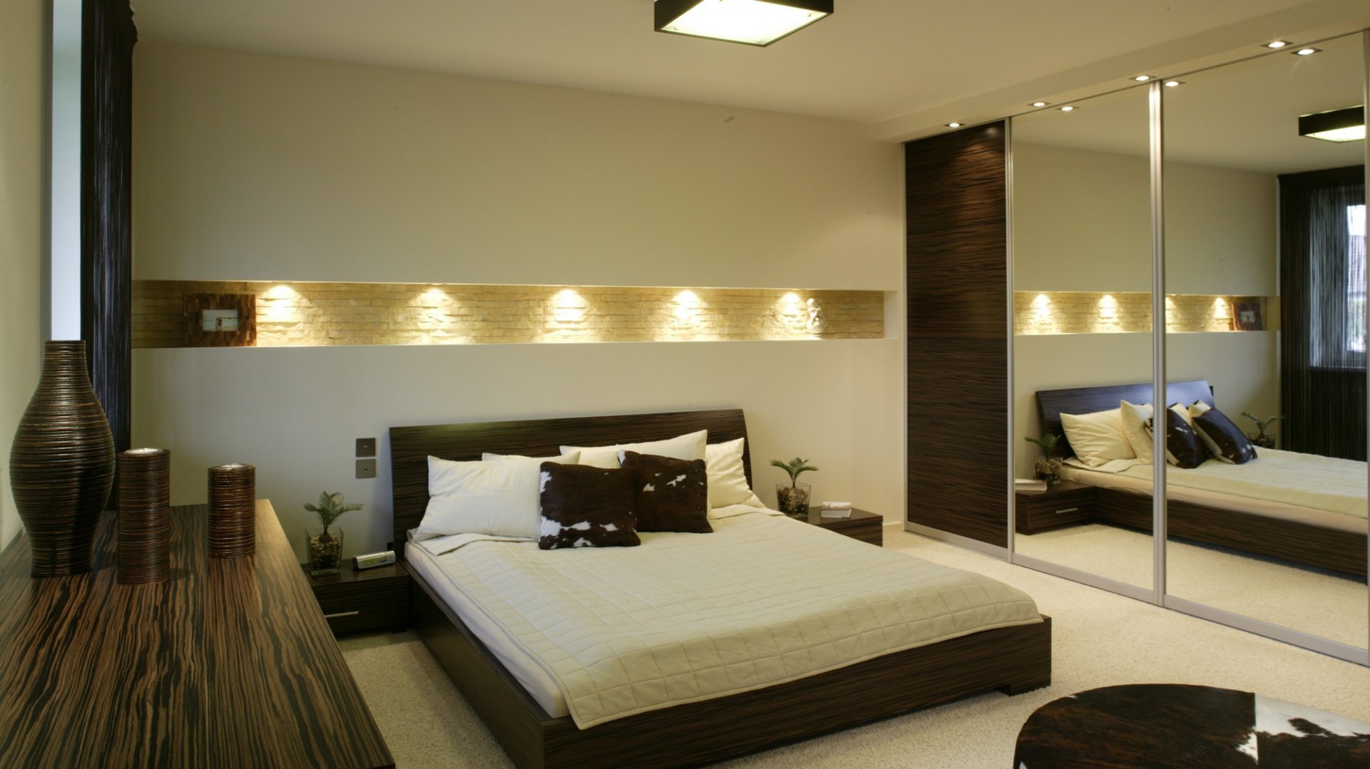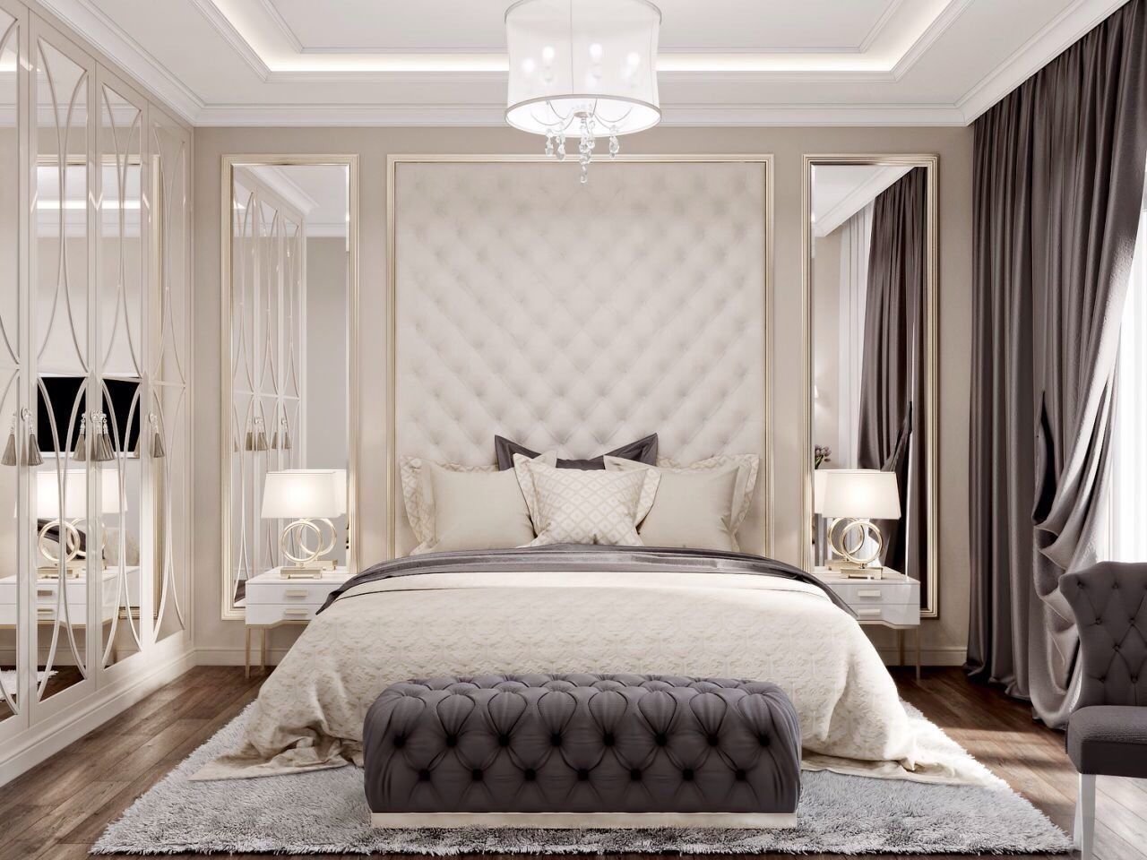 Зеркальные панели в спальне