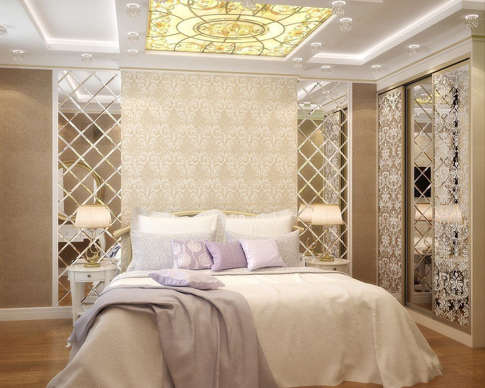 Спальня классический интерьер с зеркальной плиткой