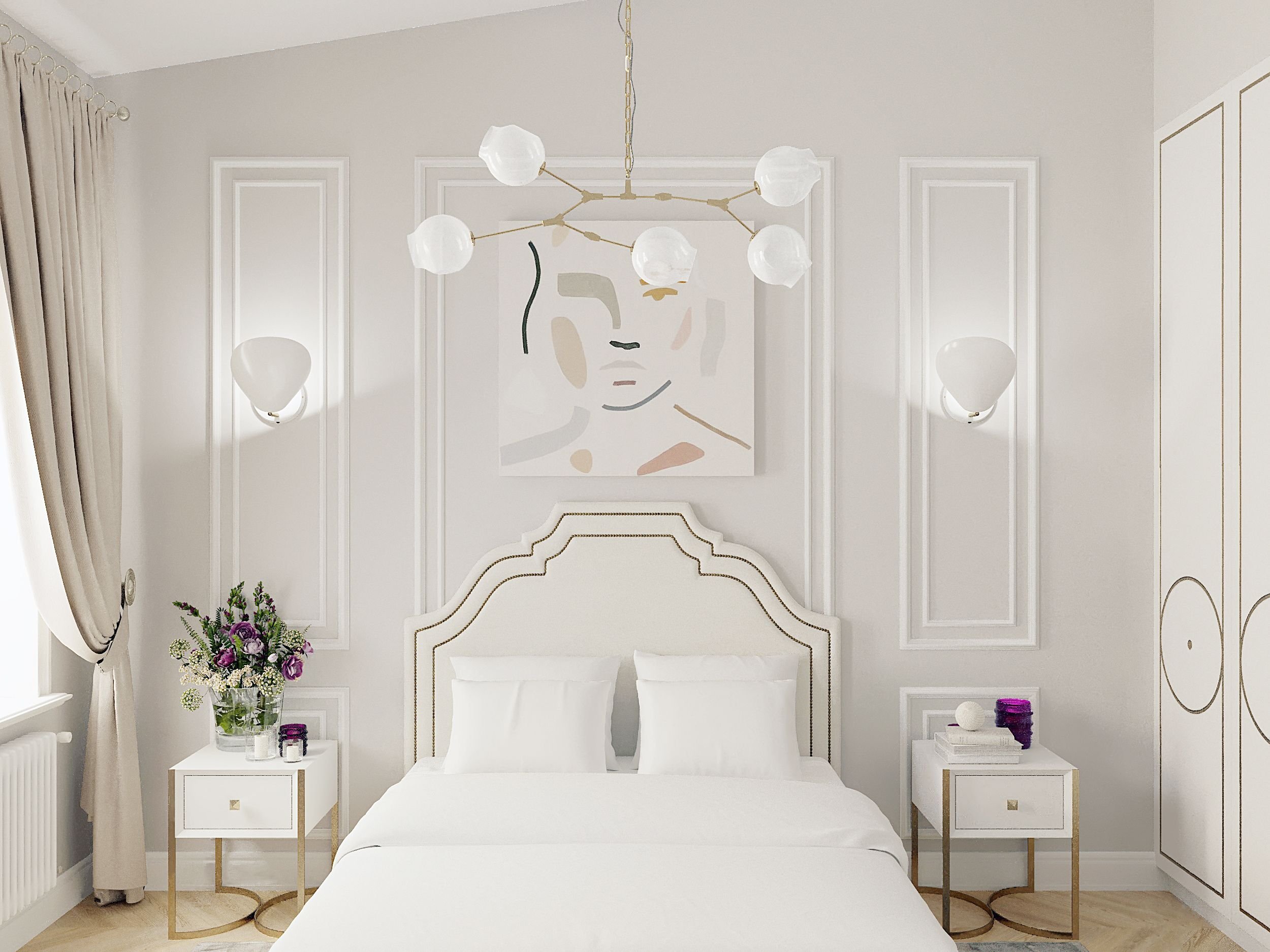 Спальня с молдингами на стенах