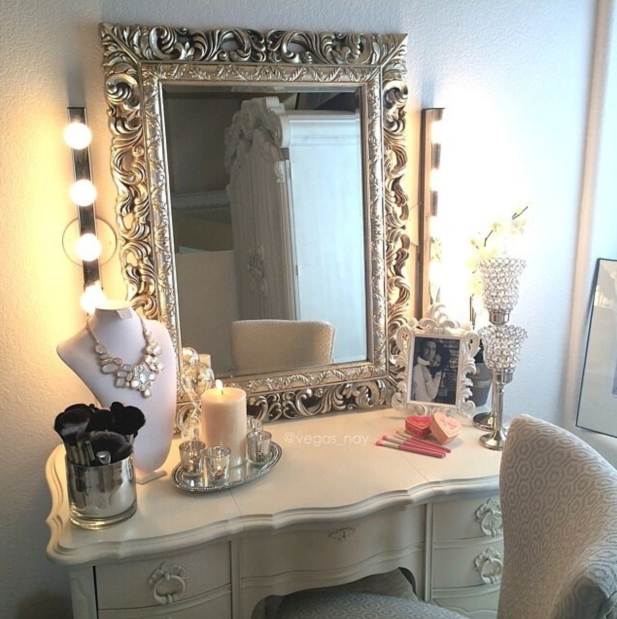 Красивое зеркало над туалетным столиком
