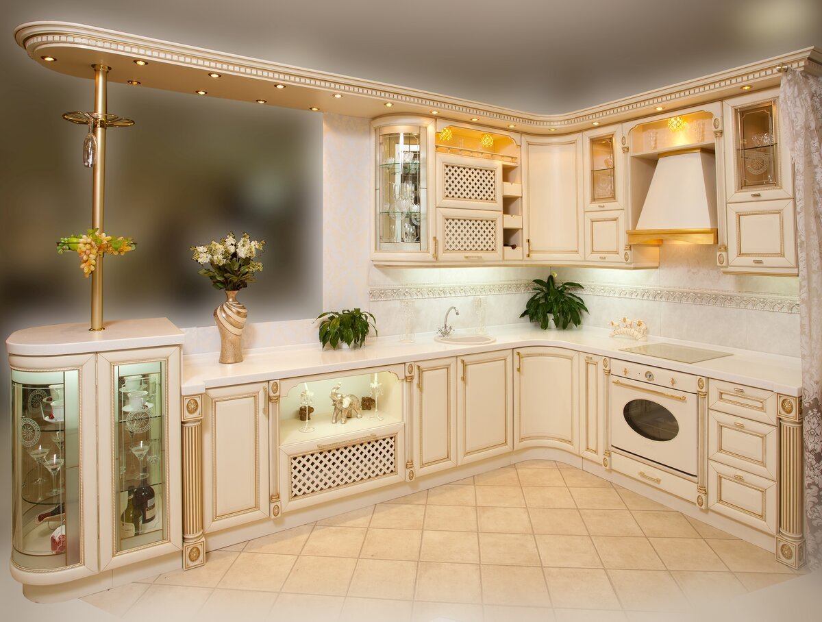 Кухня бежевая с золотом