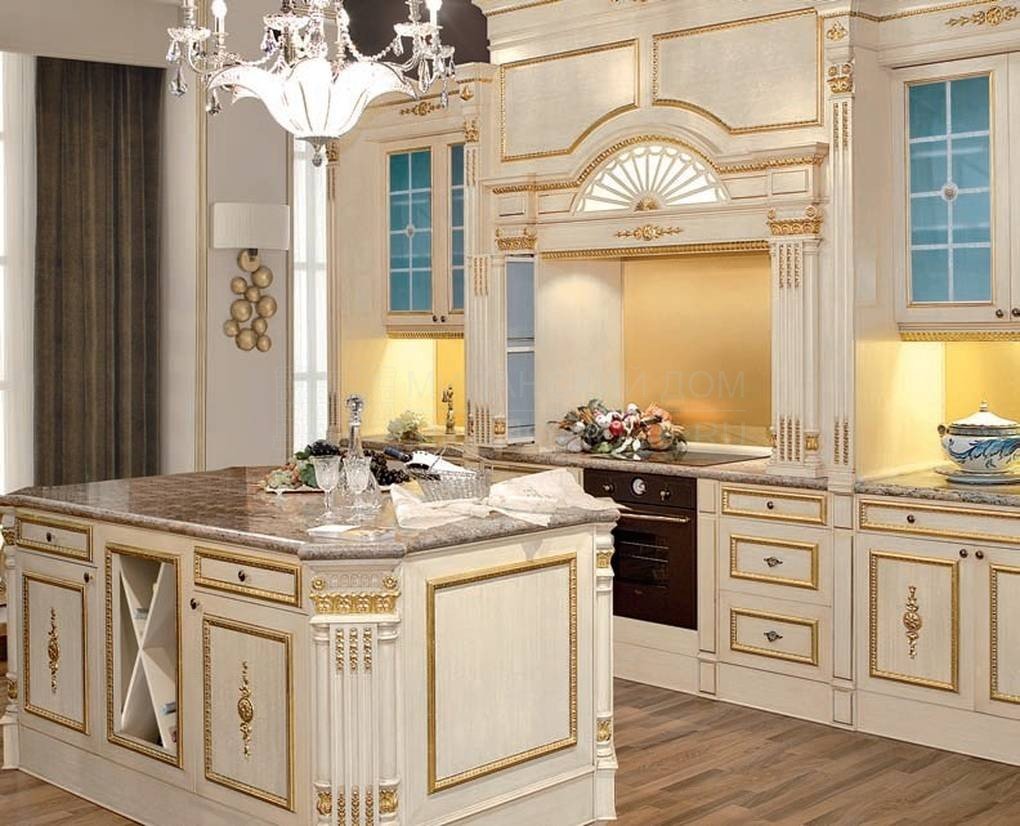 Кухня Версаче белая с золотом
