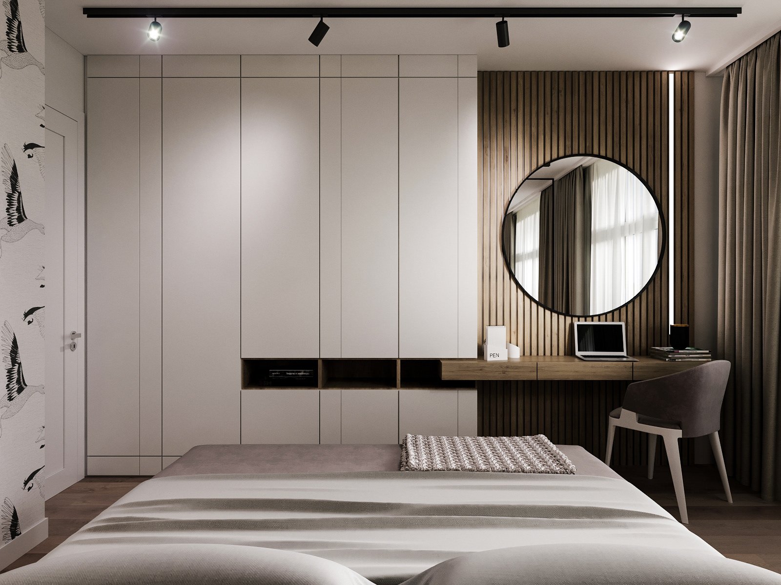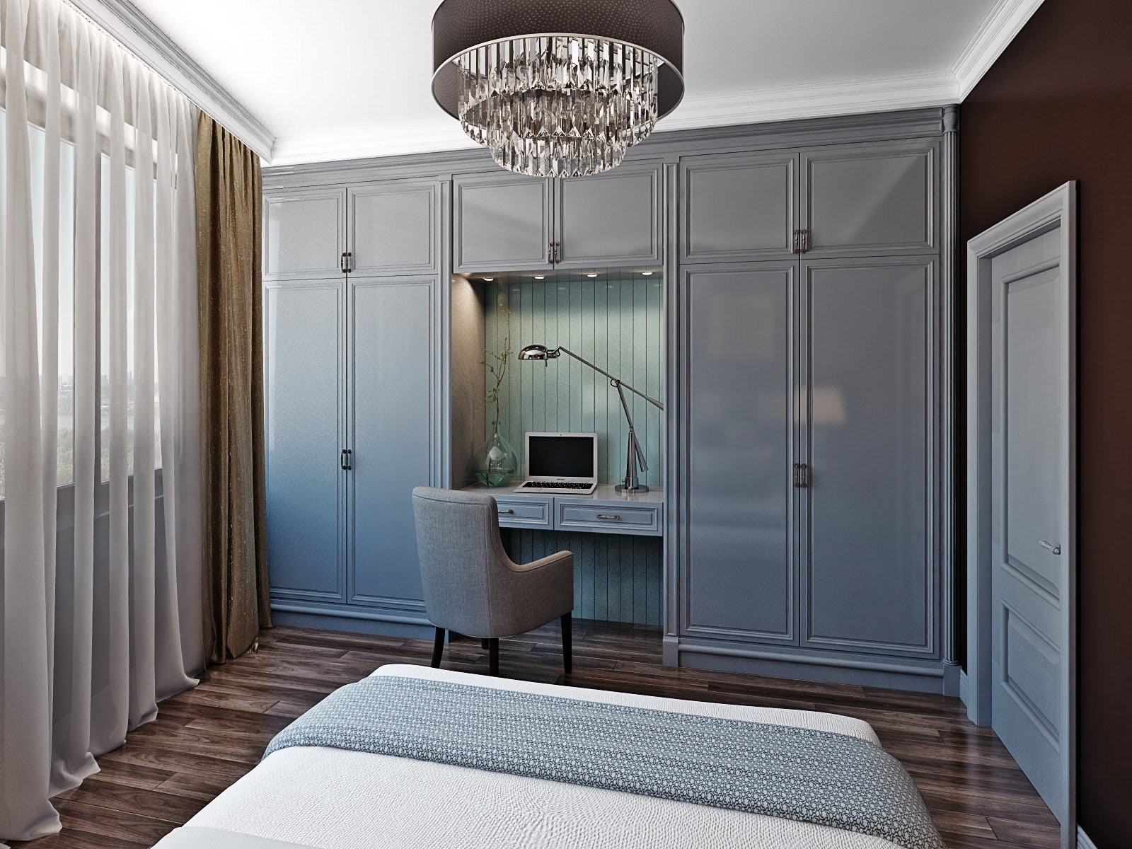 Спальня со шкафом напротив