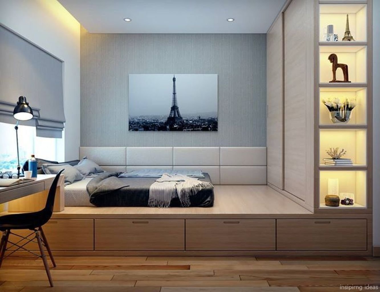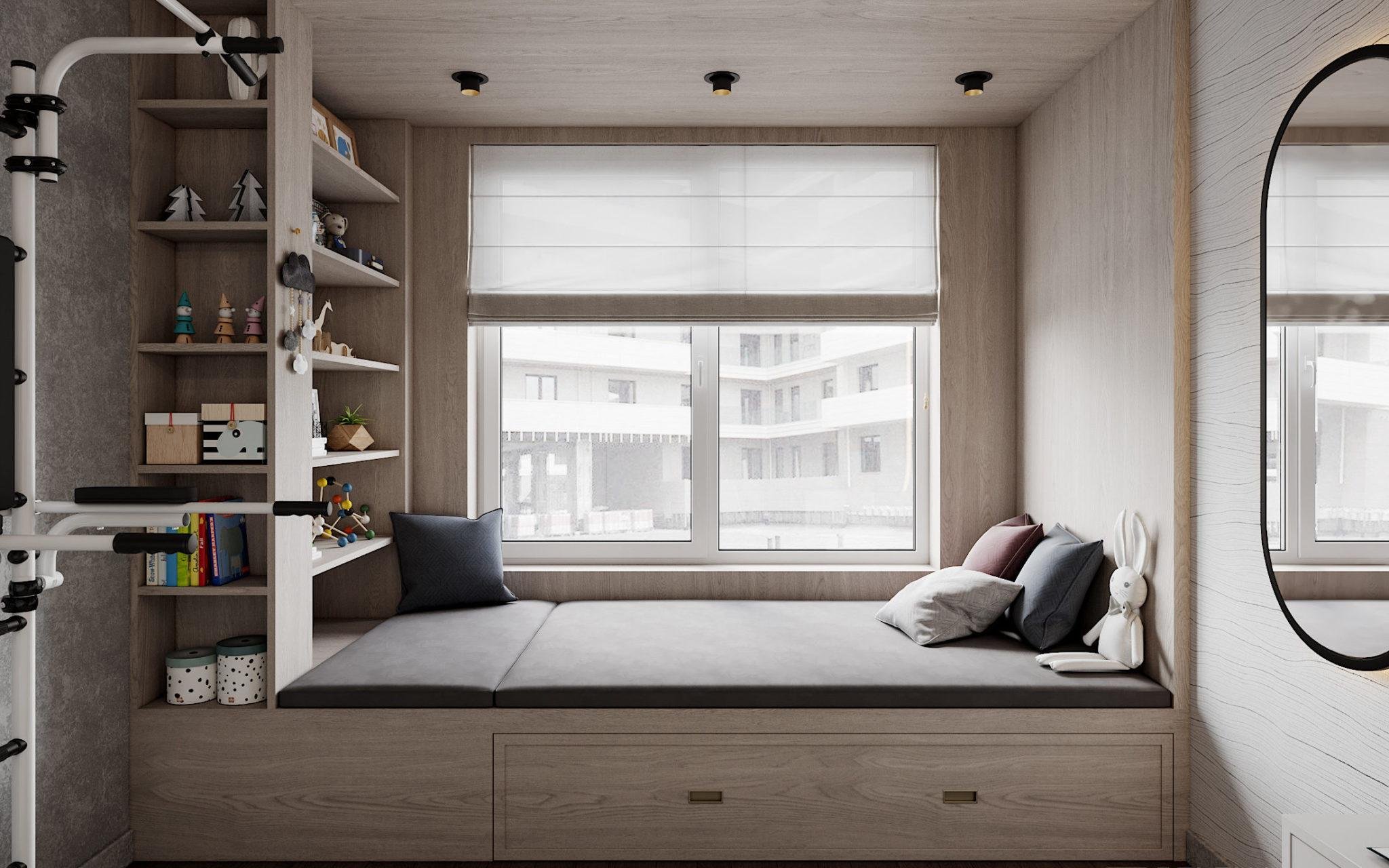Спальня с подиумом у окна