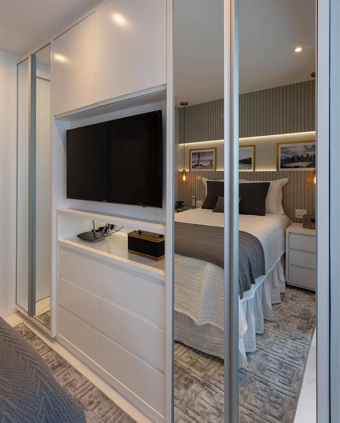 Телевизор встроенный в шкаф в спальне