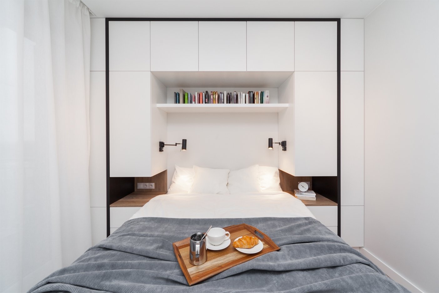 Кровать между шкафами