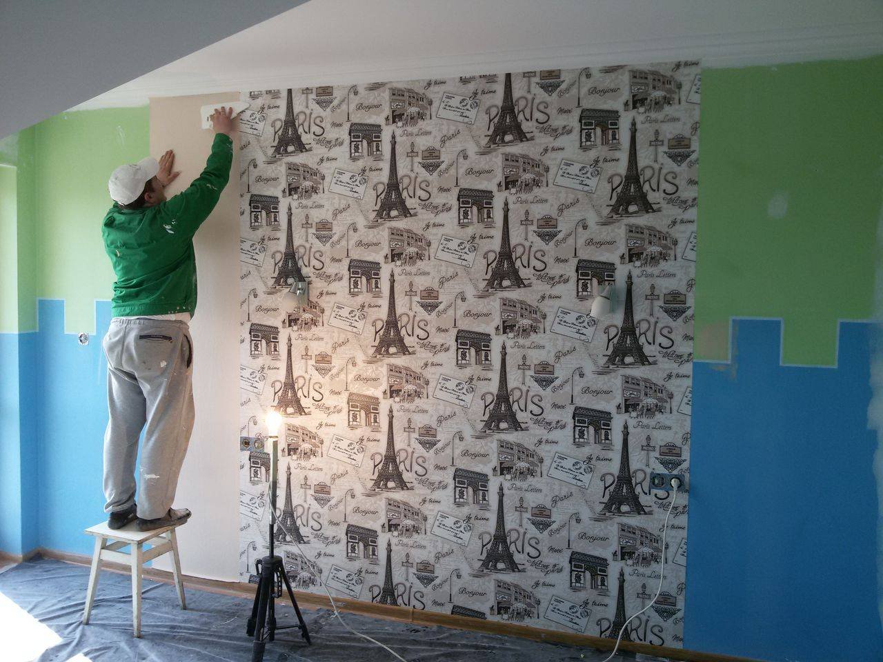 Оклеивание стен обоями двух видов