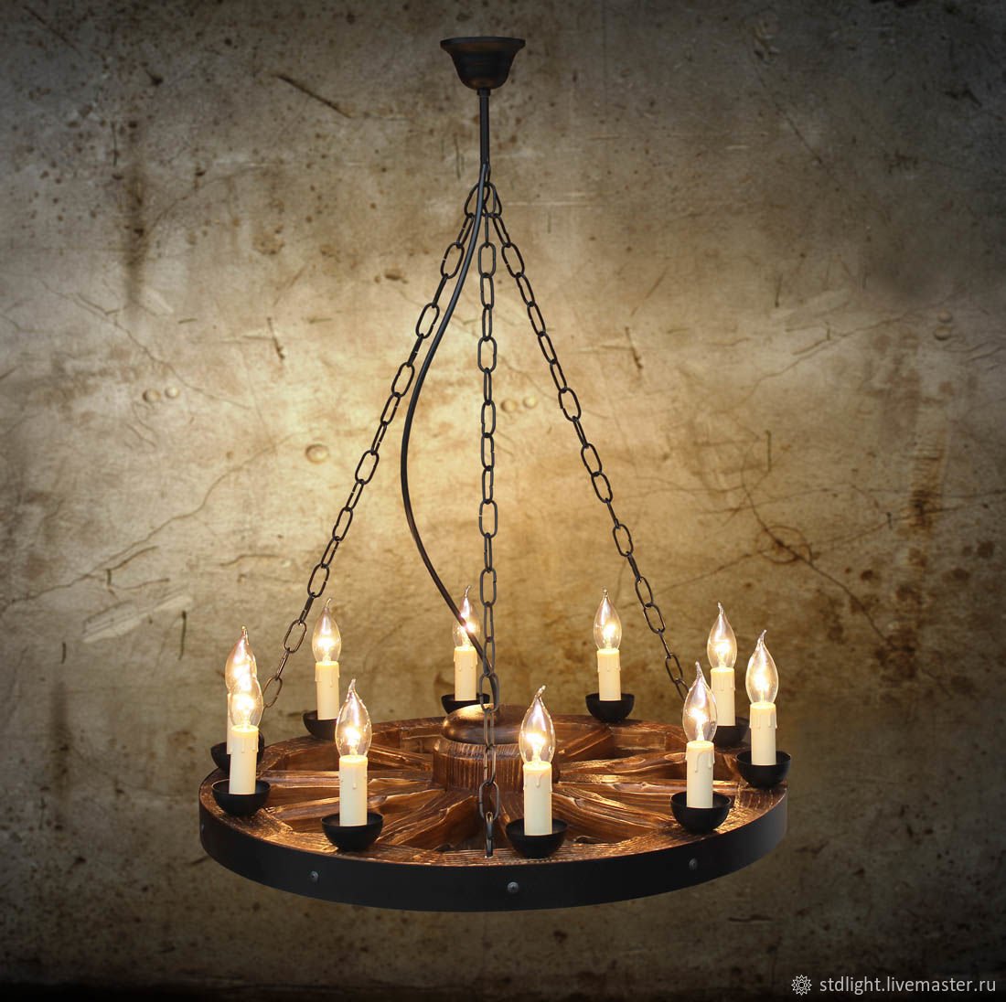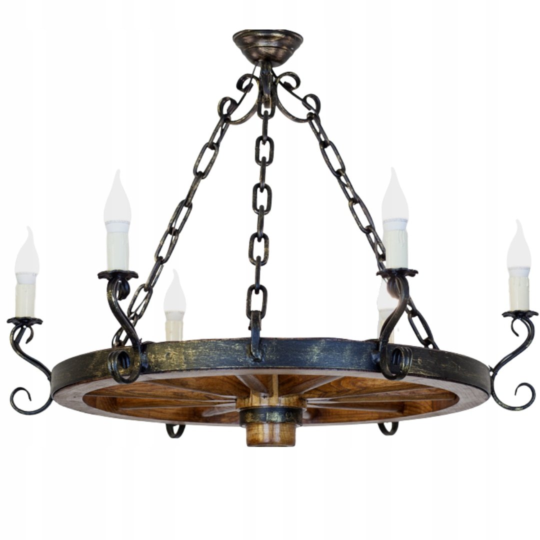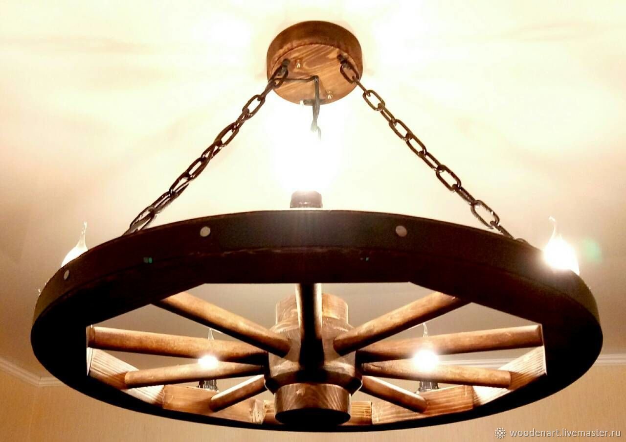 Люстра из тележного колеса
