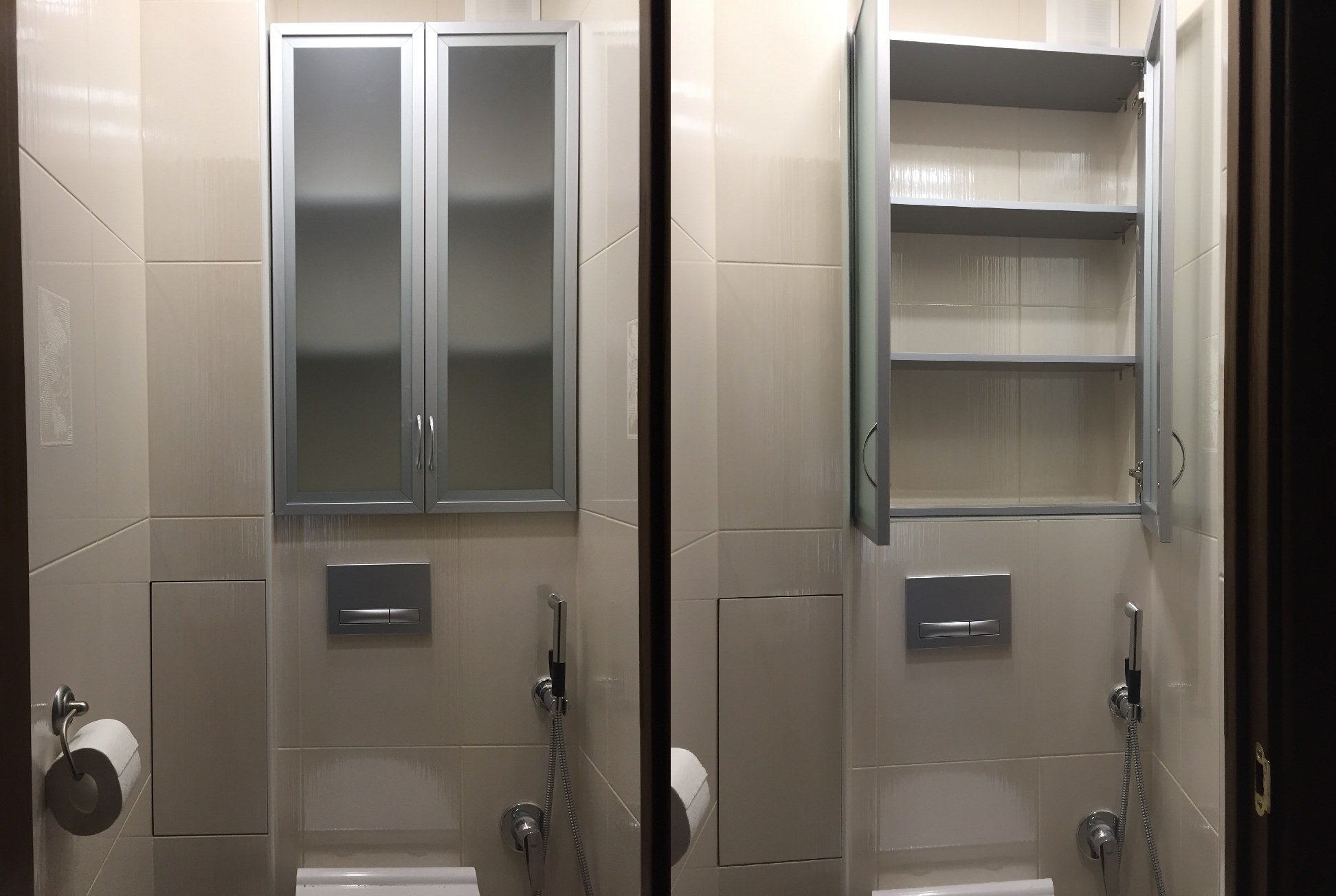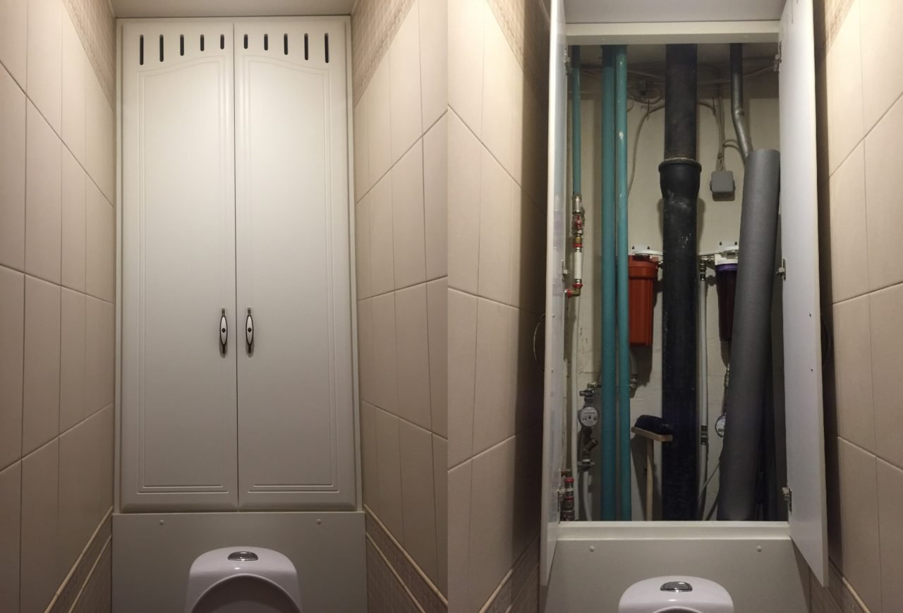 Дверцы в туалете за унитазом
