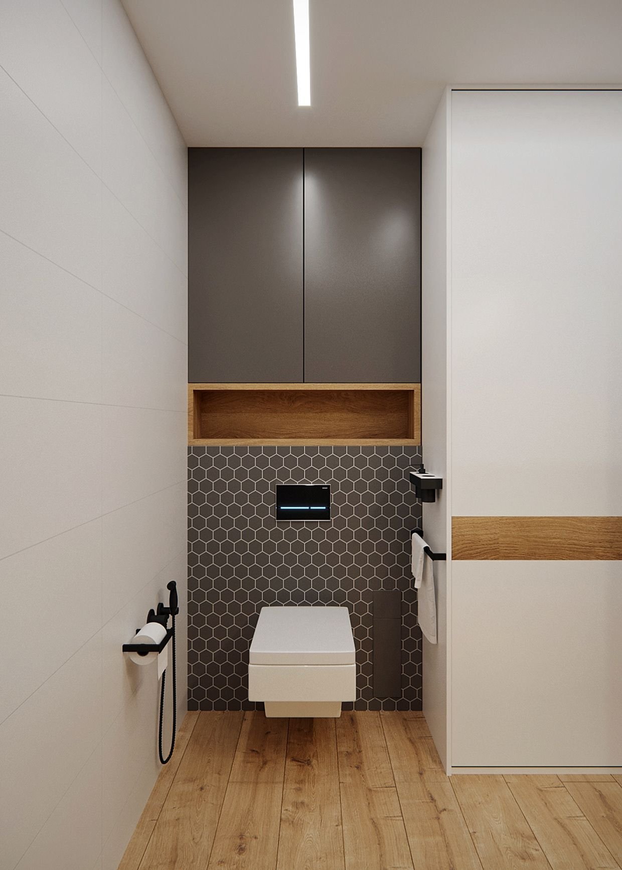 Деревянный шкаф в туалете
