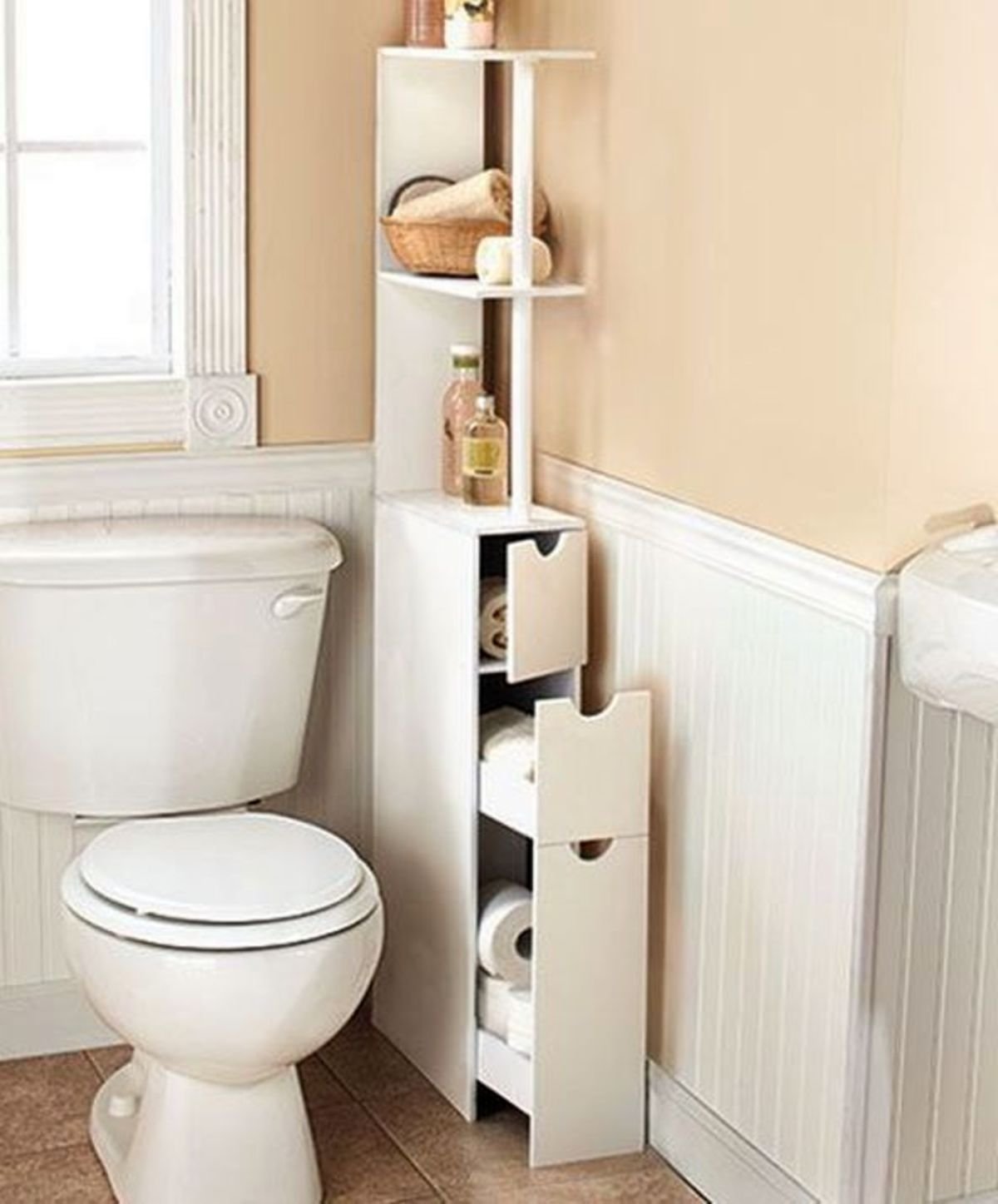 Стеллаж в маленьком туалете