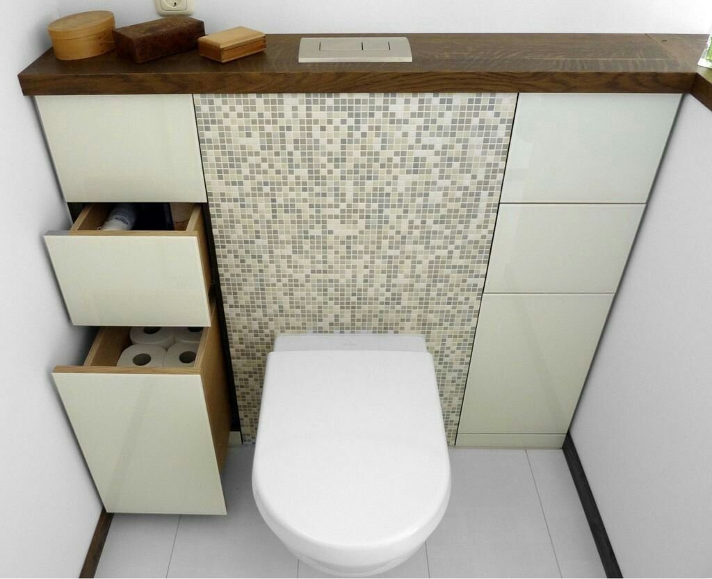 Полочки в туалете за унитазом