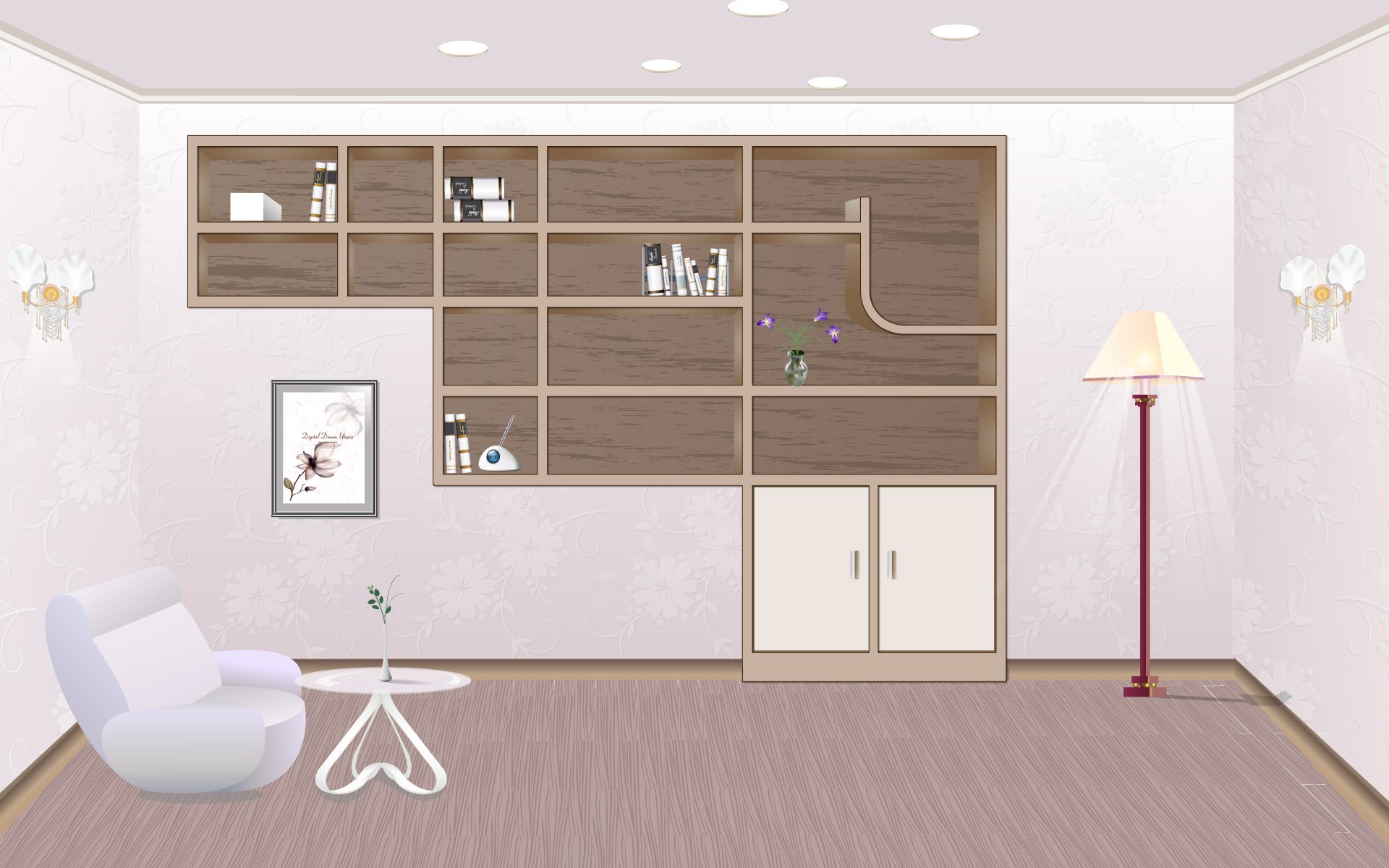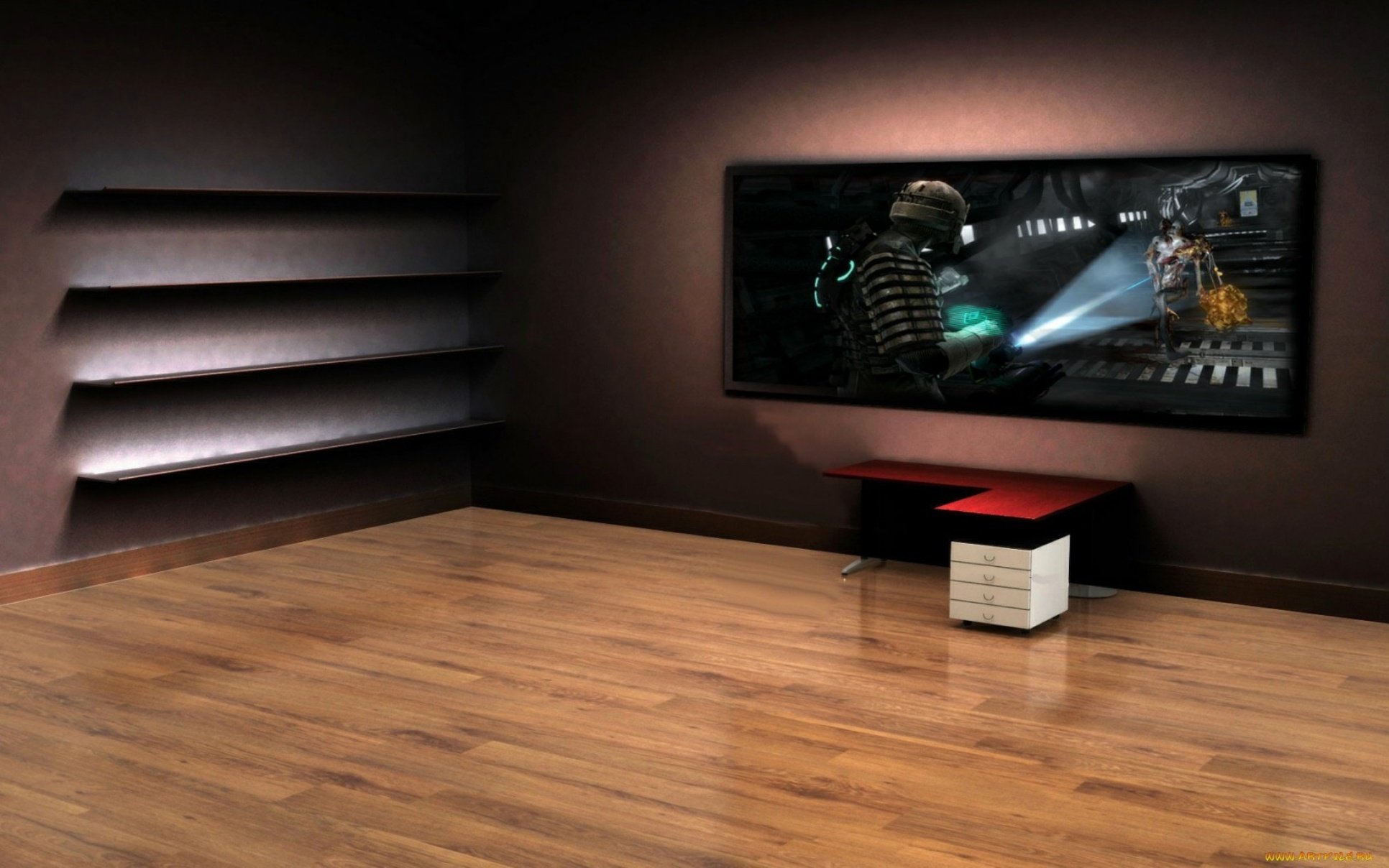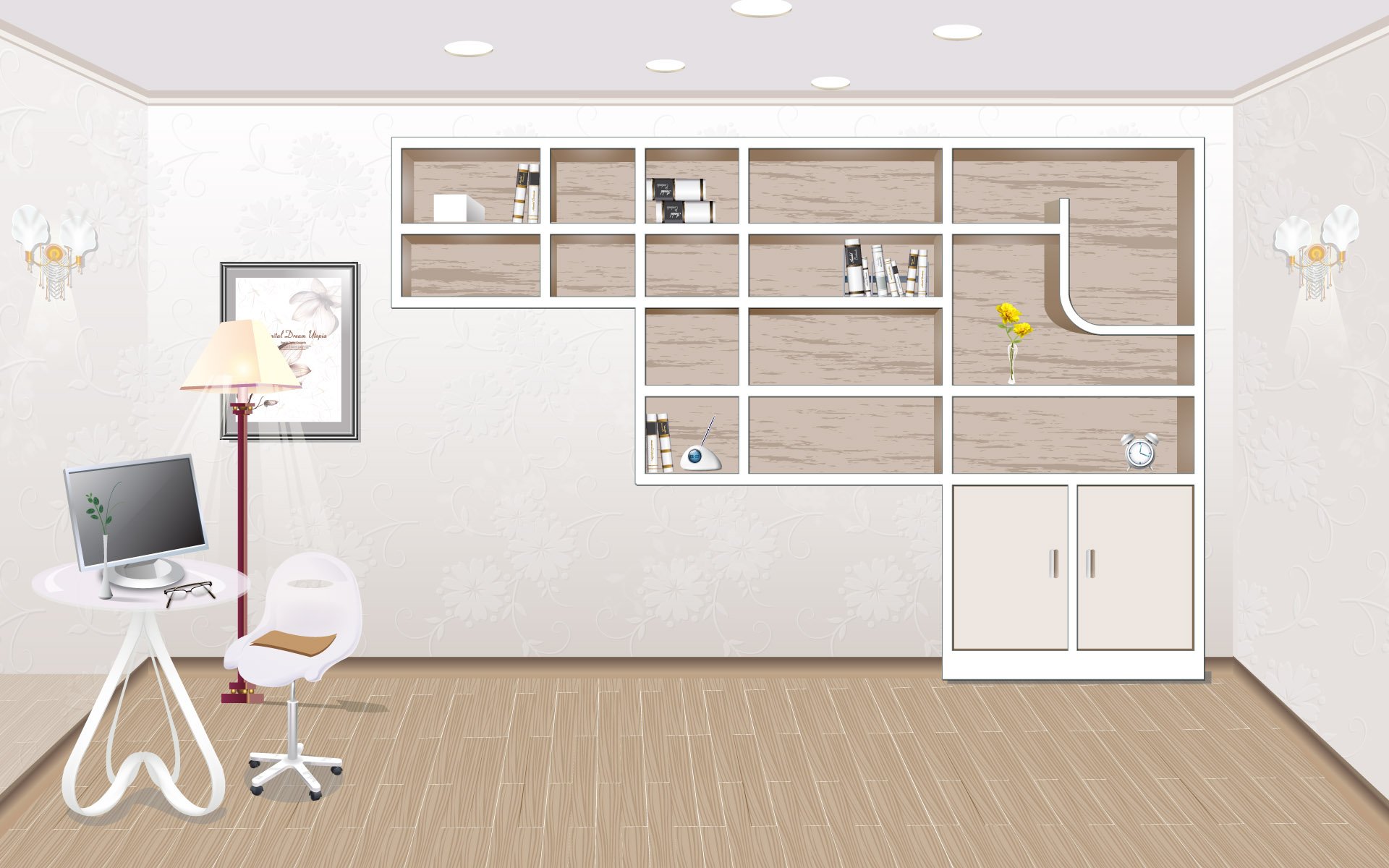 Фон для рабочего стола комната с полками