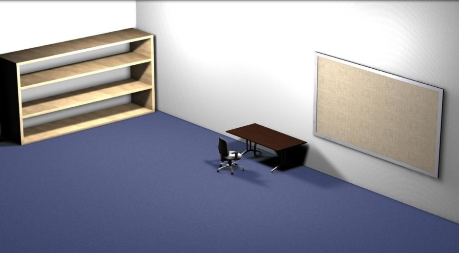 Пустая комната с полками и столом