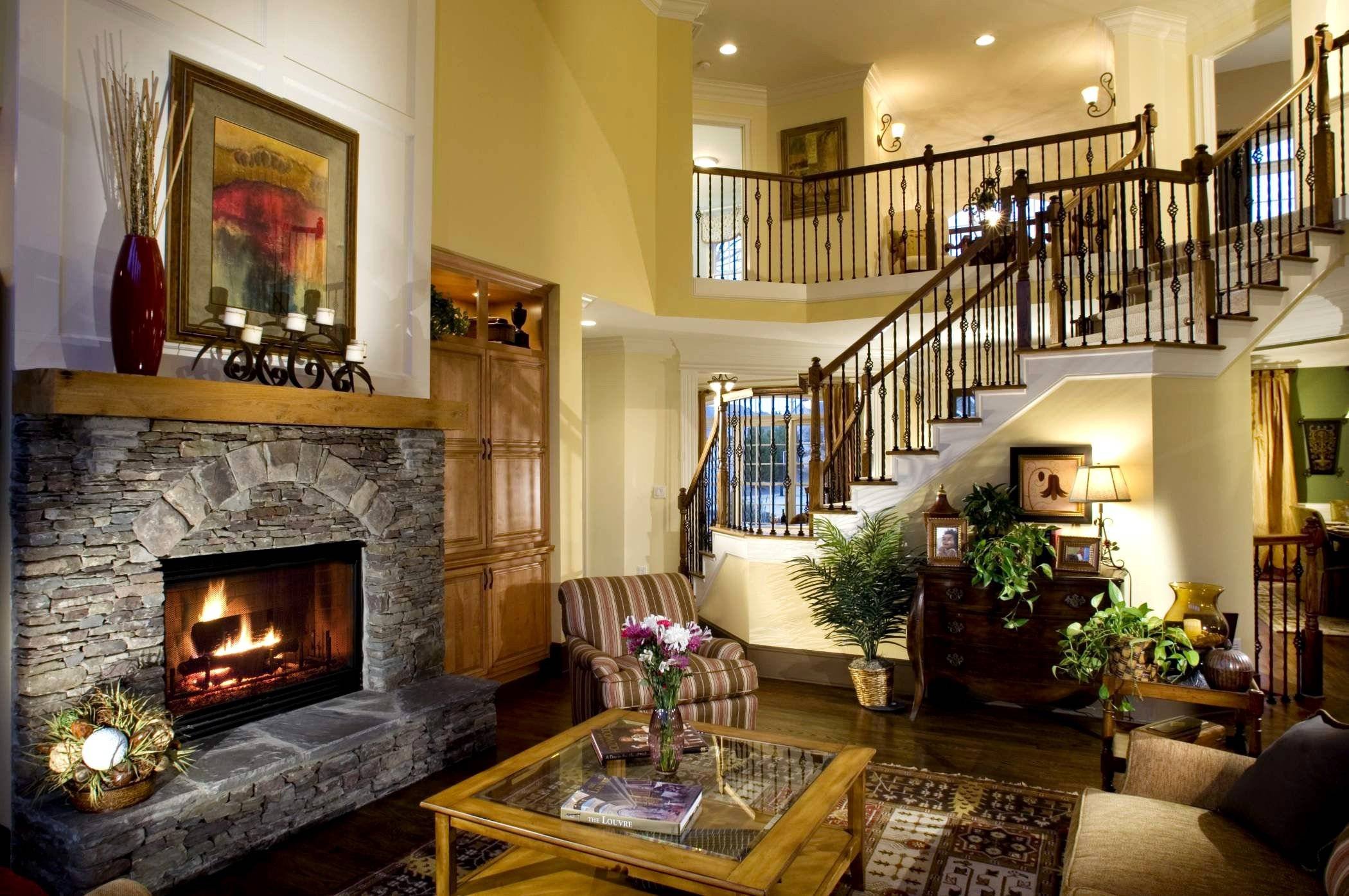 Красивая гостиная с камином
