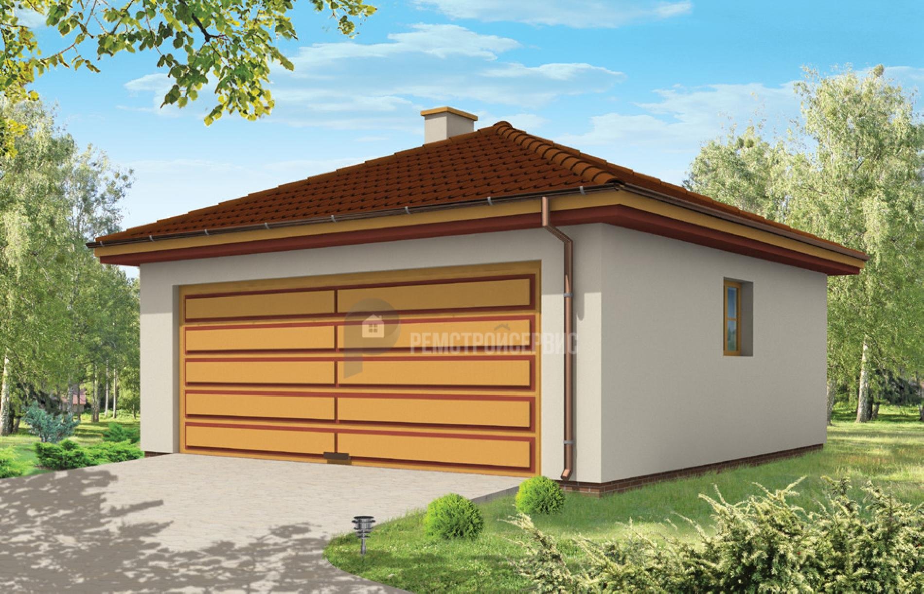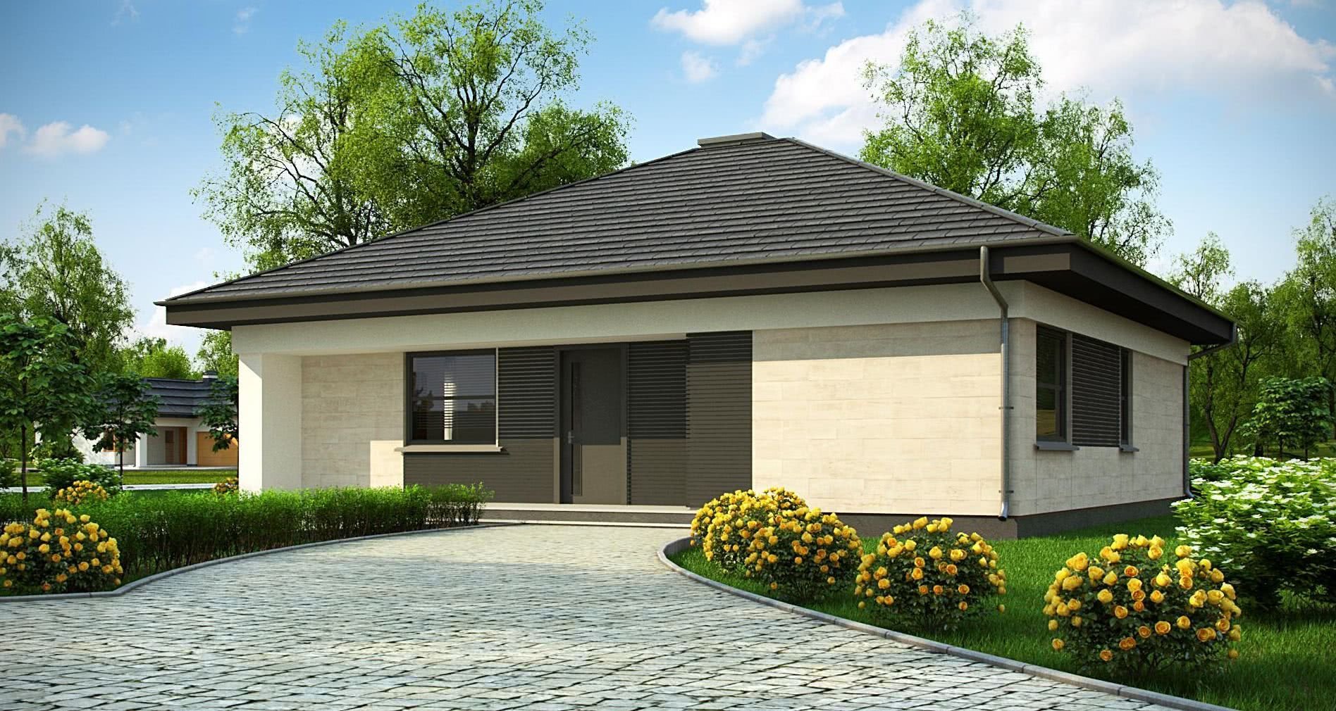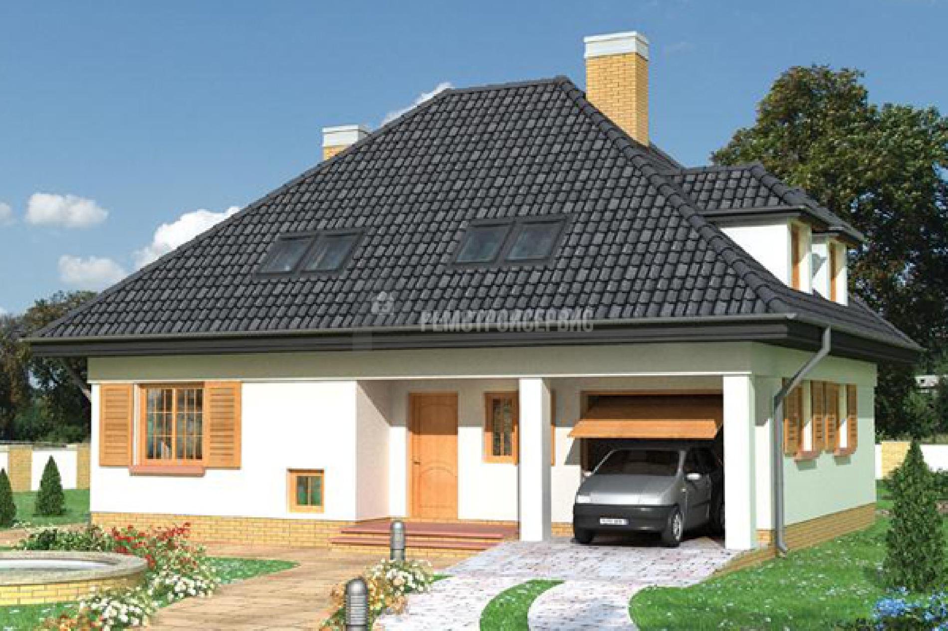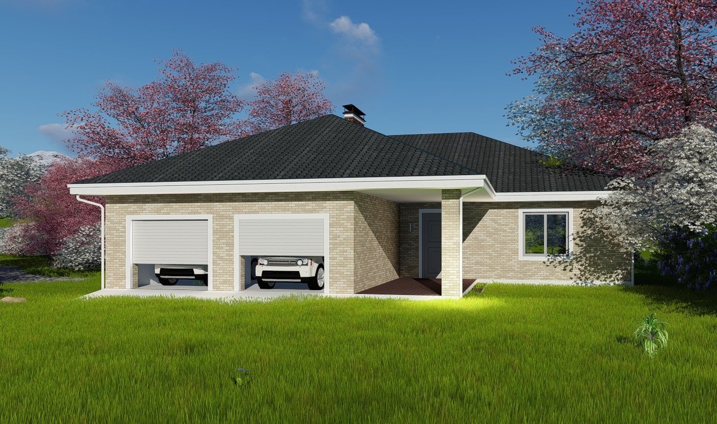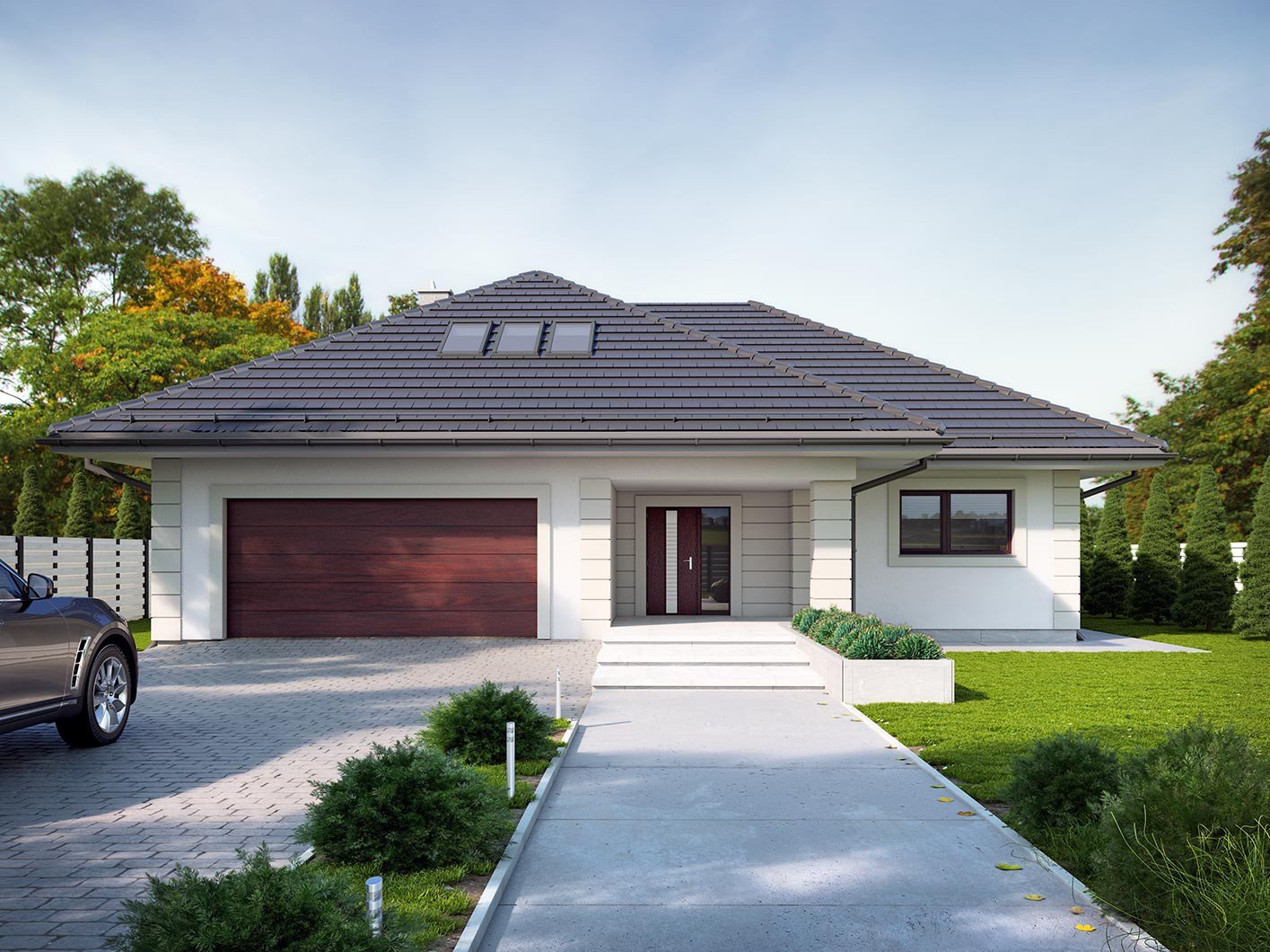 Одноэтажный дом с четырехскатной крышей и гаражом