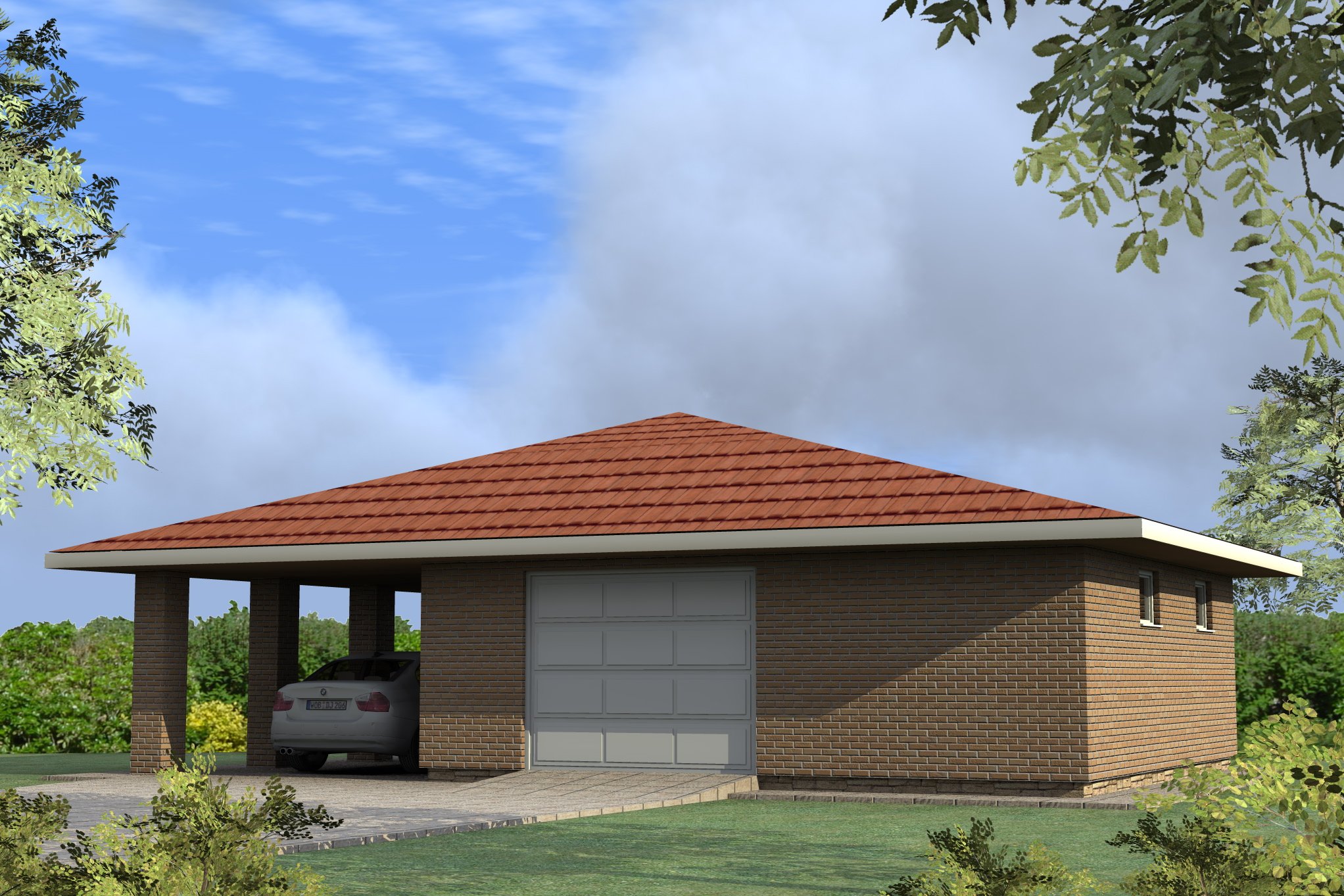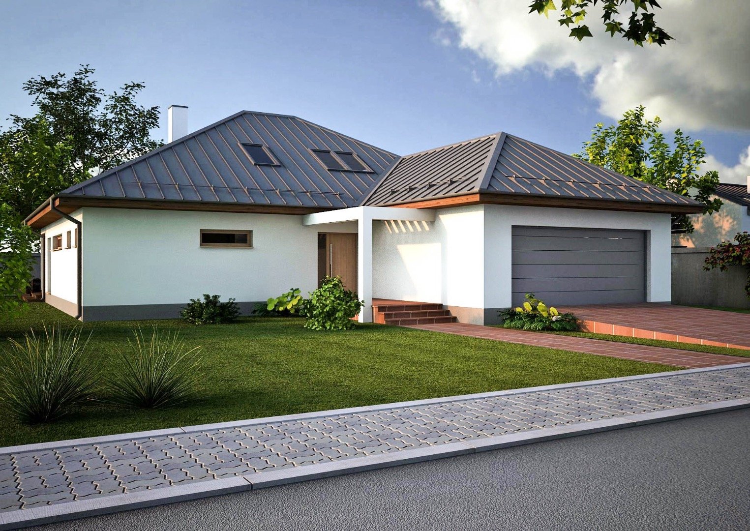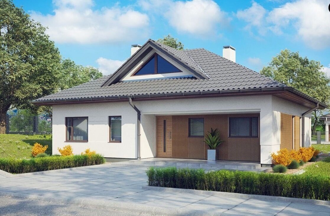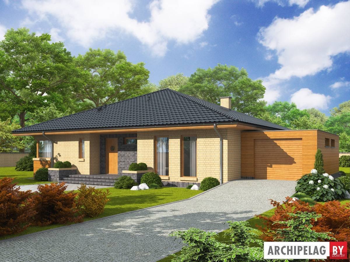 Одноэтажный дом с четырехскатной крышей и гаражом