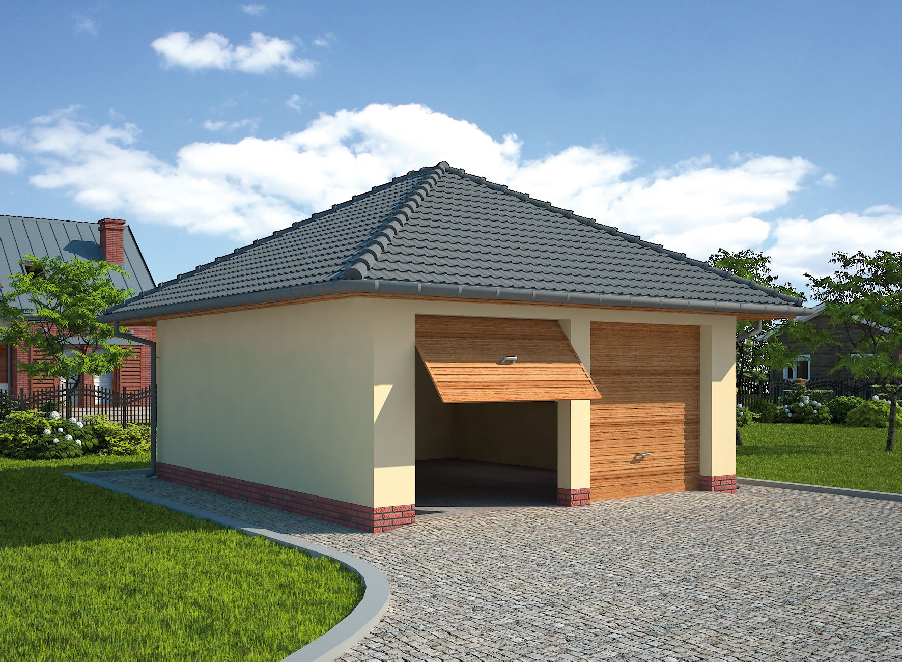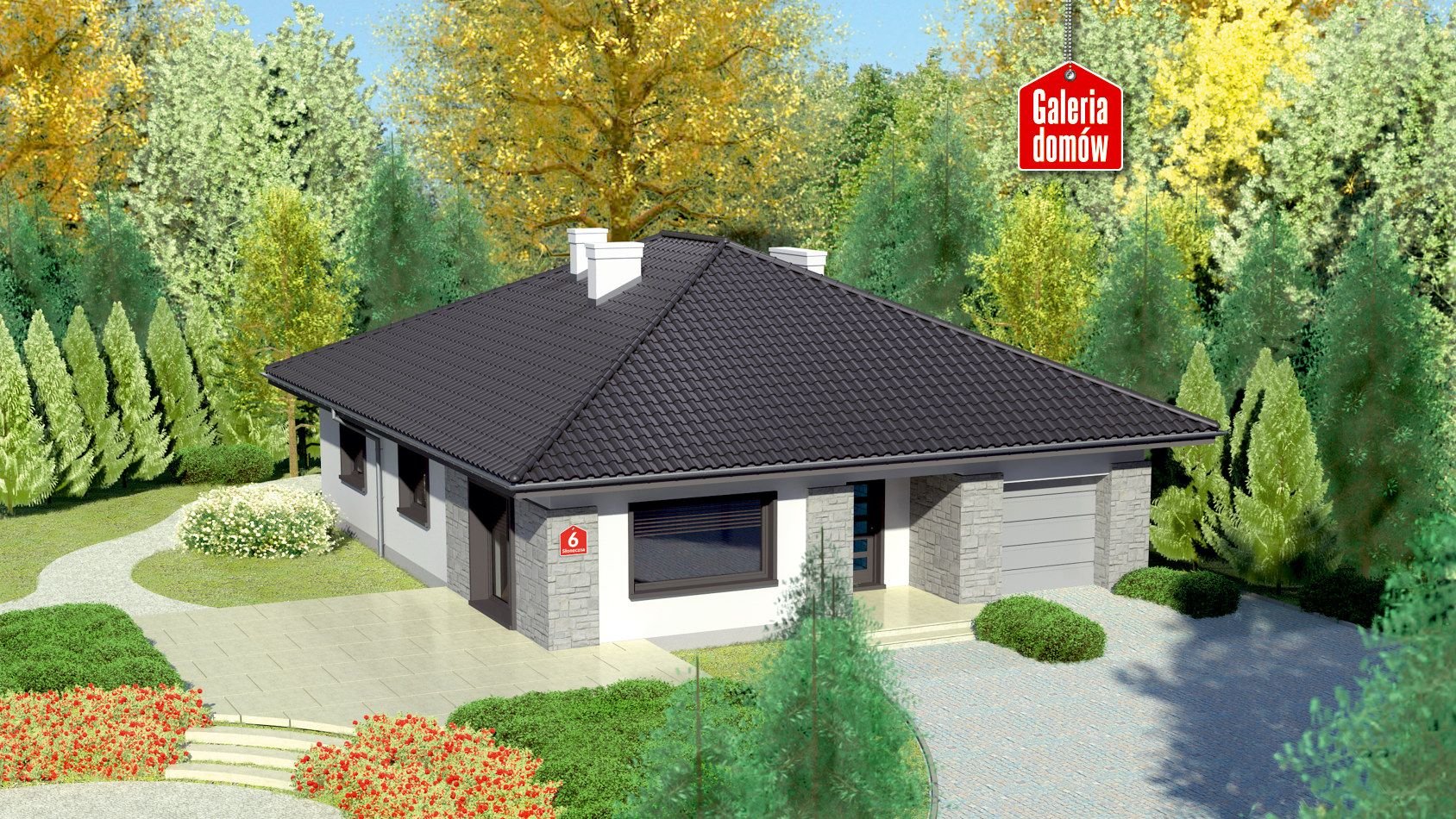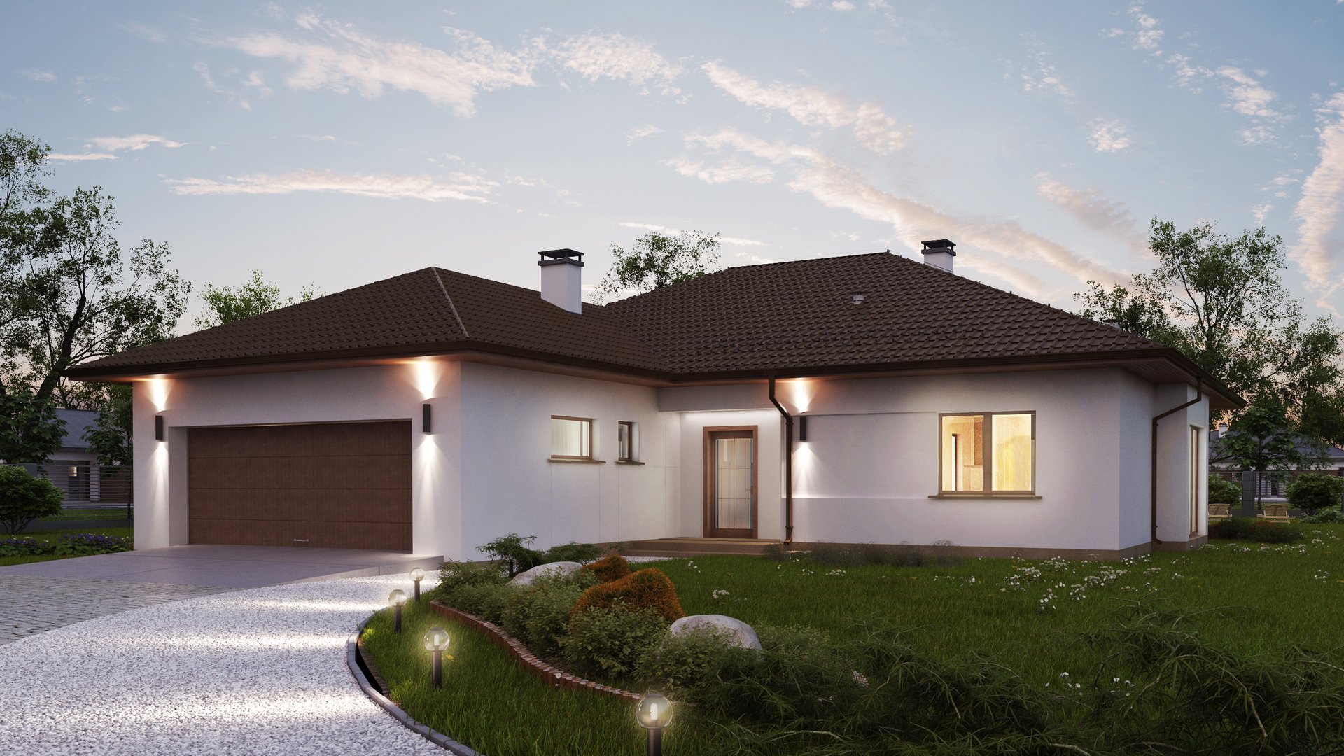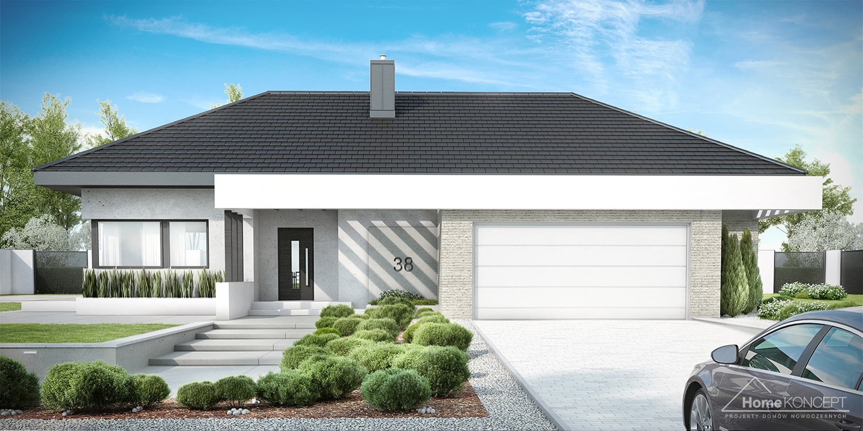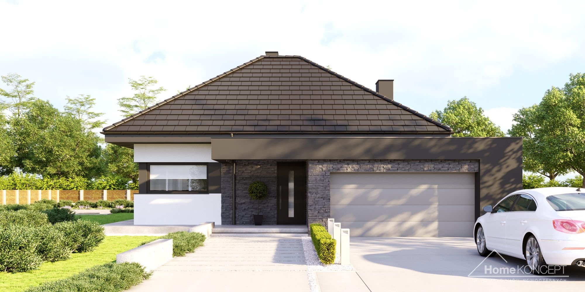 Одноэтажный дом с четырехскатной крышей и гаражом