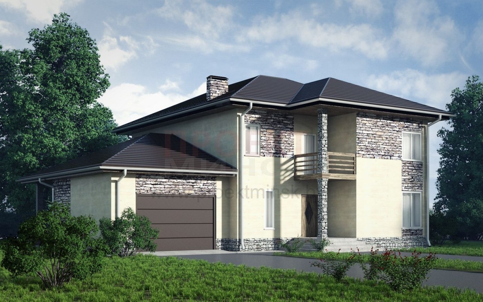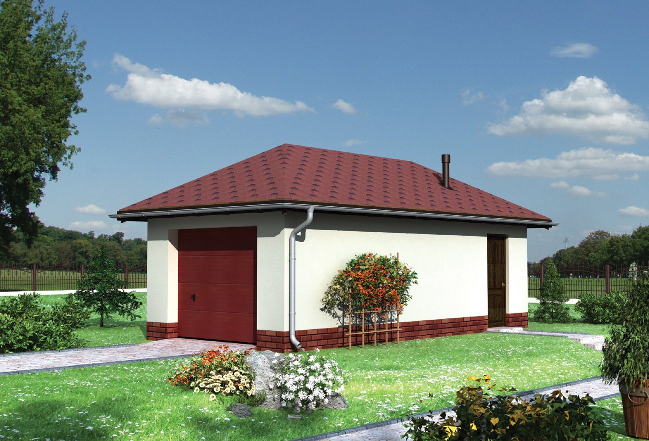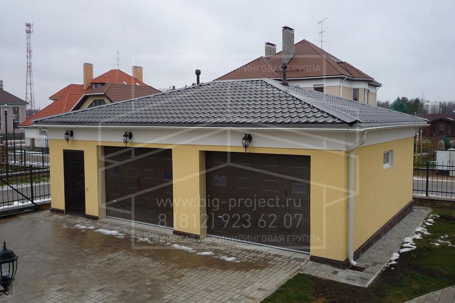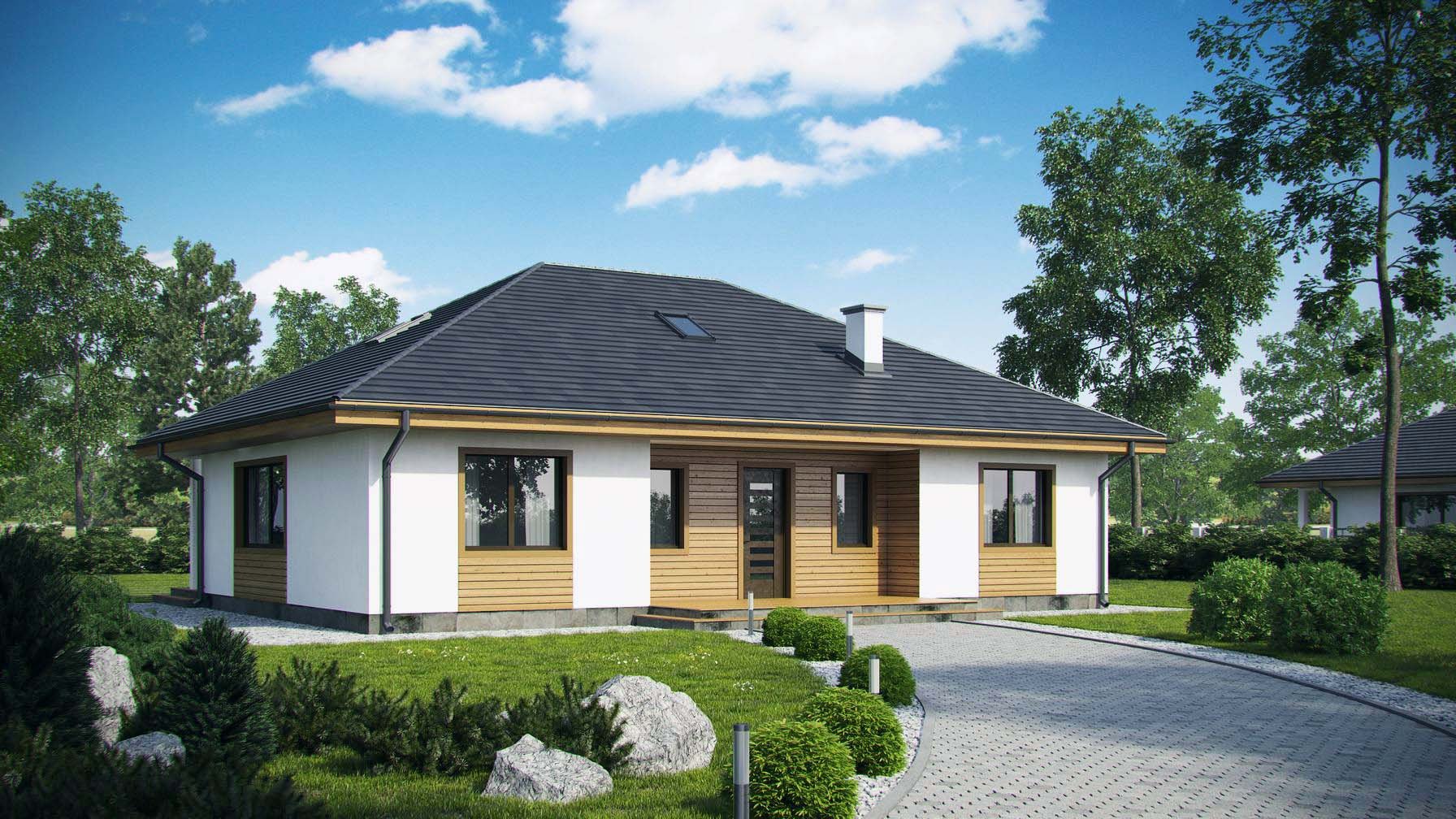 Одноэтажный дом с четырехскатной крышей и гаражом