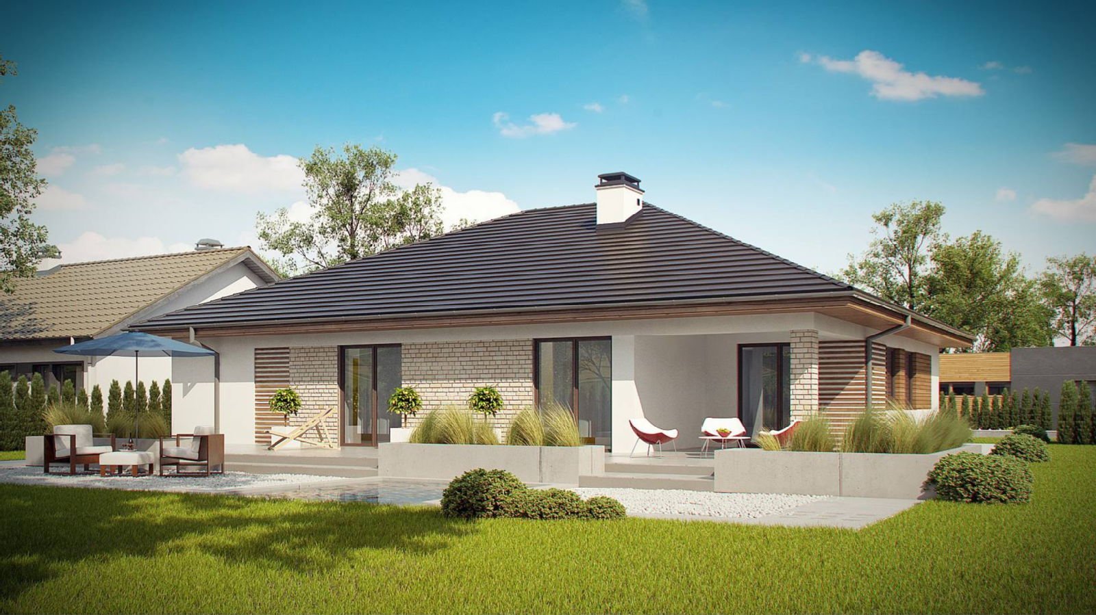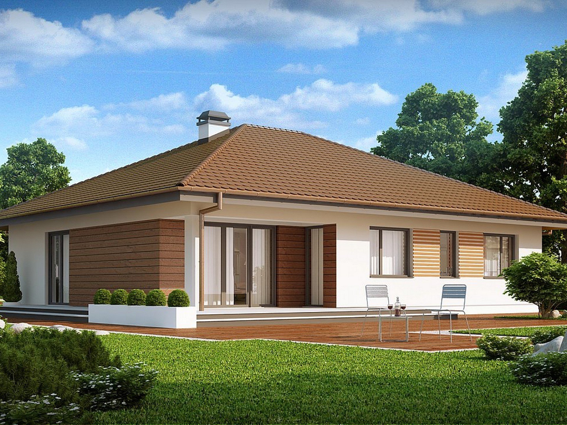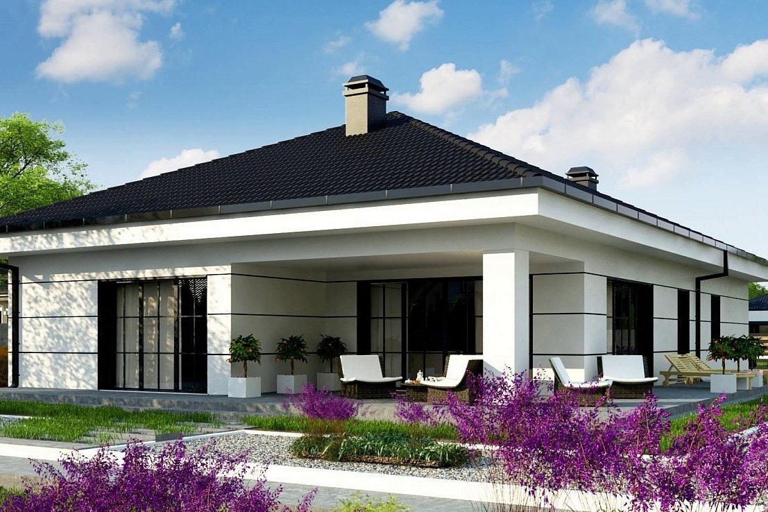 Одноэтажный дом с четырехскатной крышей 100 квадратов