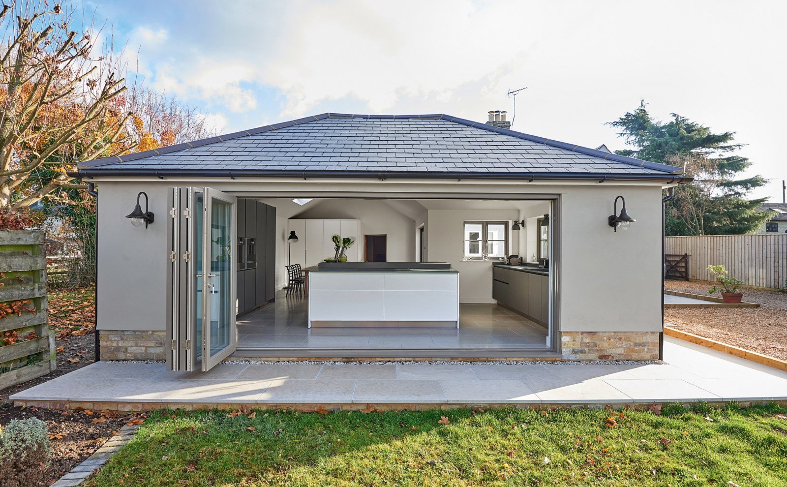Одноэтажный дом в стиле лофт четырехскатной крышей